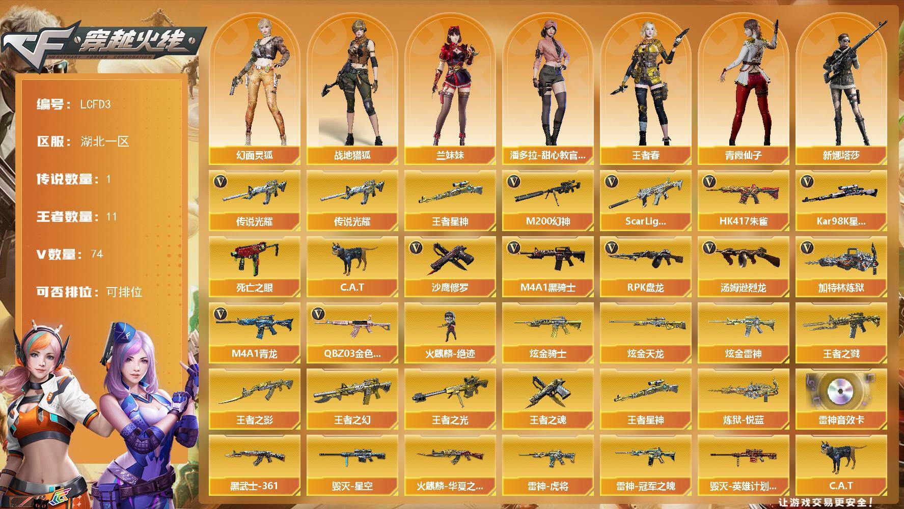 【特价出售/店主推荐】湖北一区-77V-11王者武器数-3炫金武器数【传说武