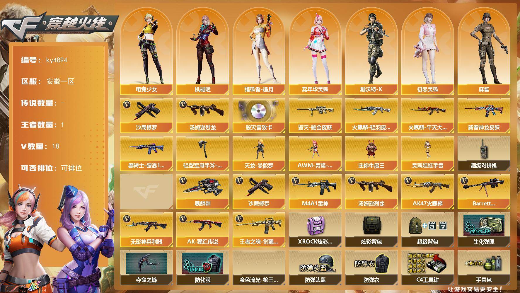 端游 | 安徽一区 | 可购终身包赔