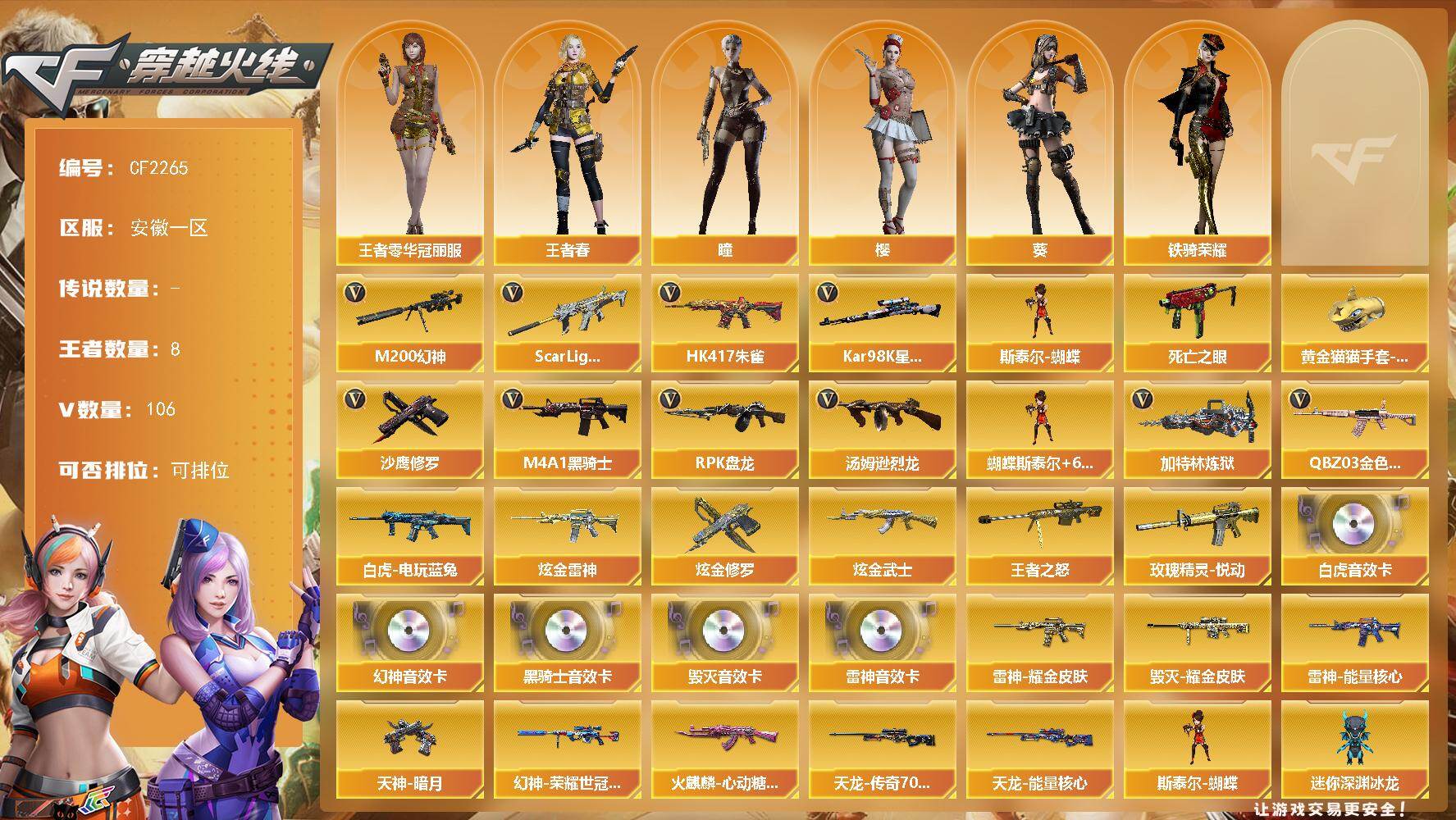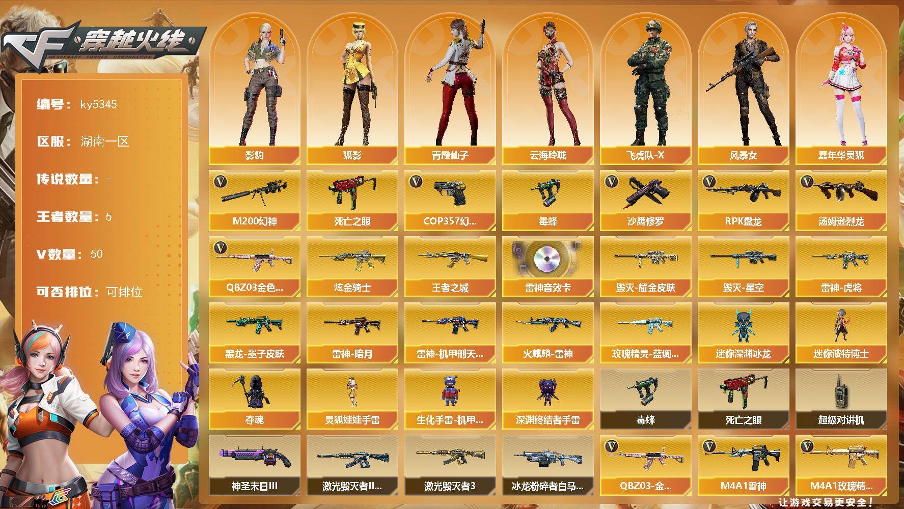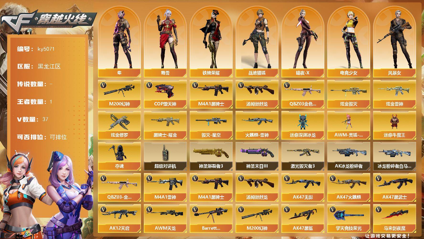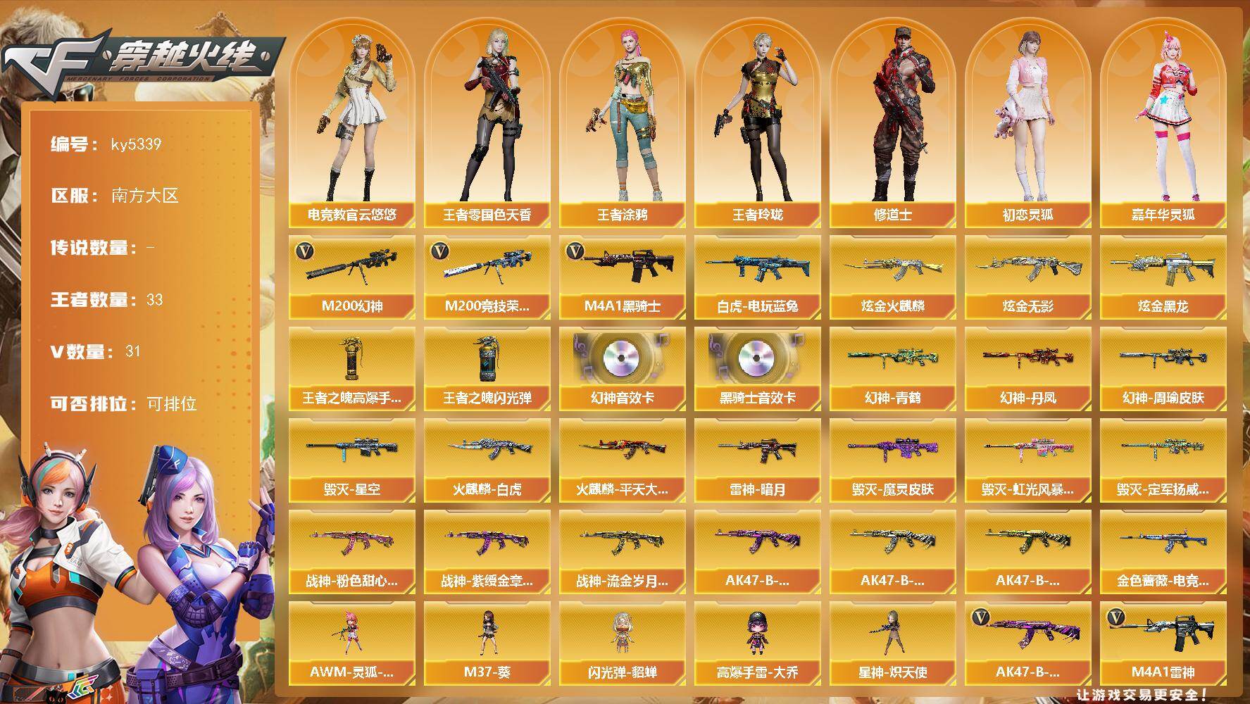 南方大区-44V-33王者武器数-3炫金武器数【热门武器】:M200-幻神,