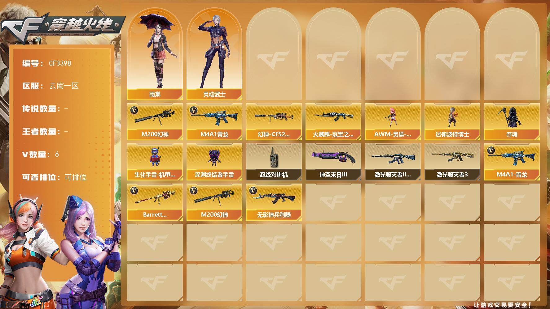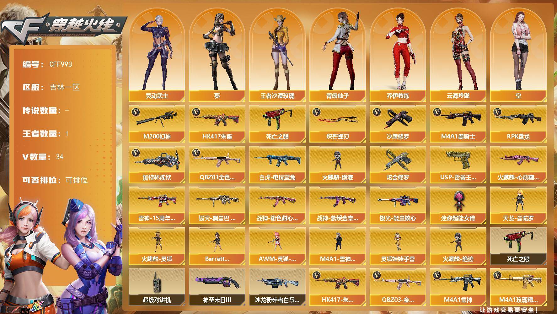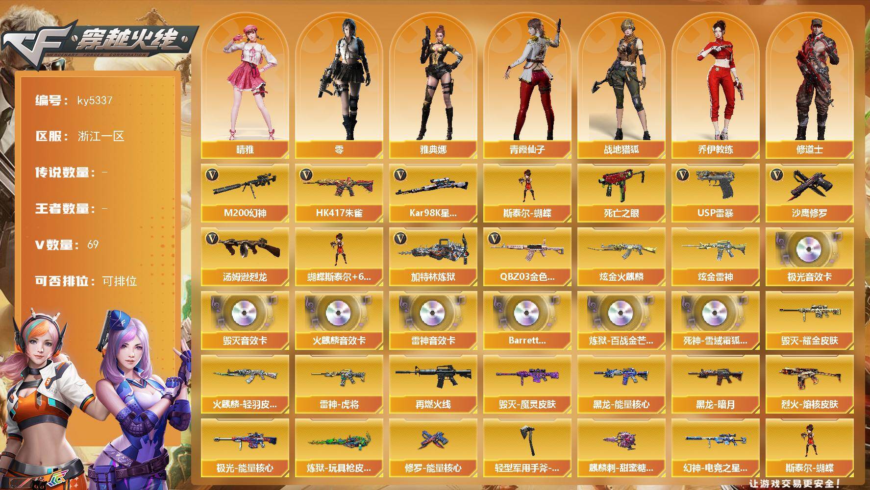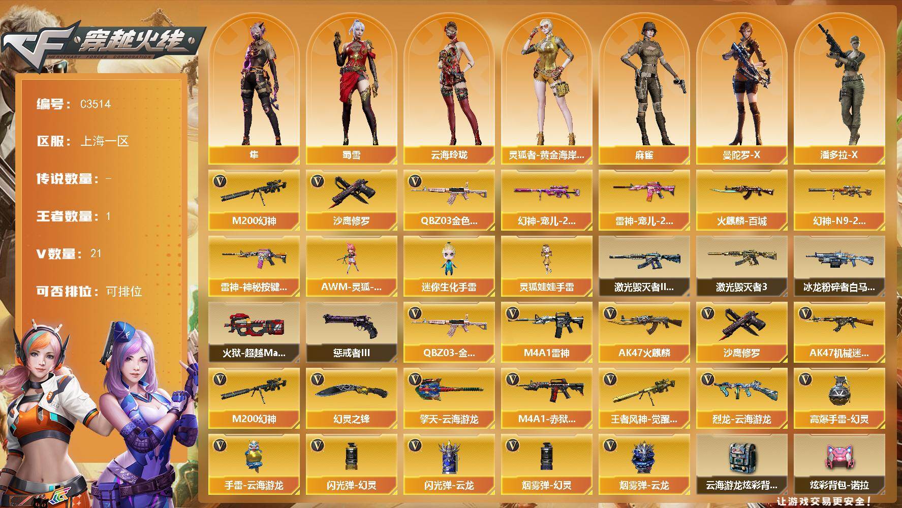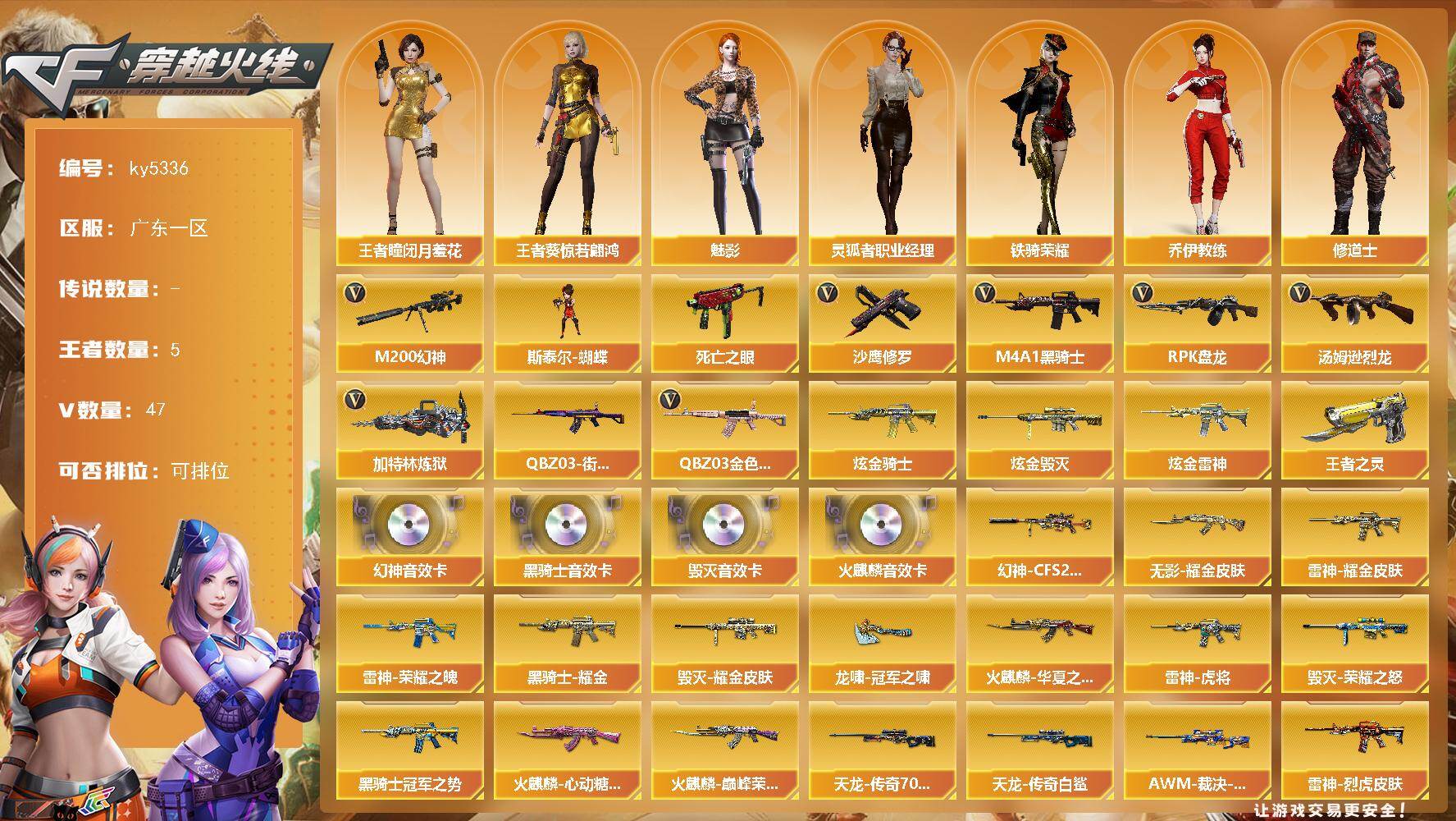南方大区-44V-33王者武器数-3炫金武器数【热门武器】:M200-幻神,