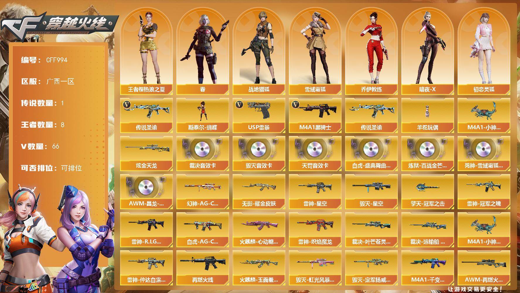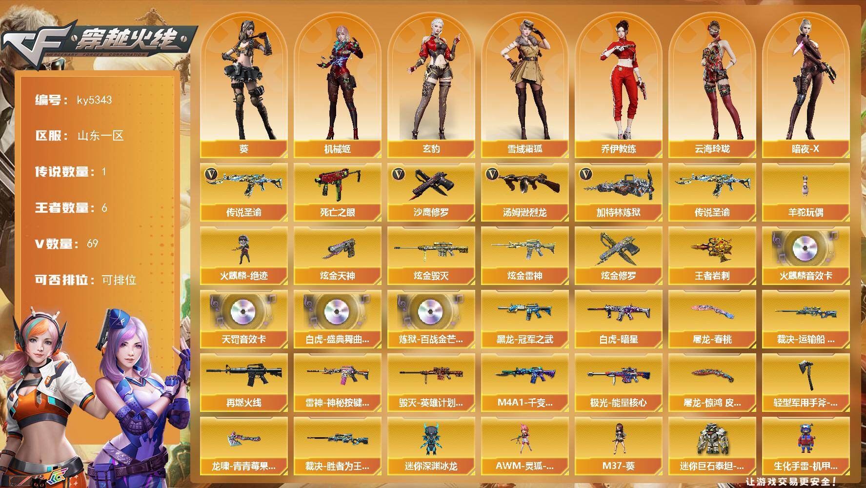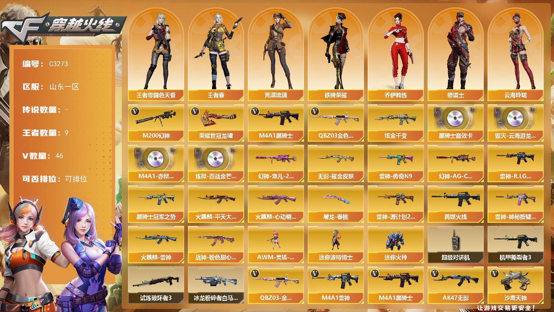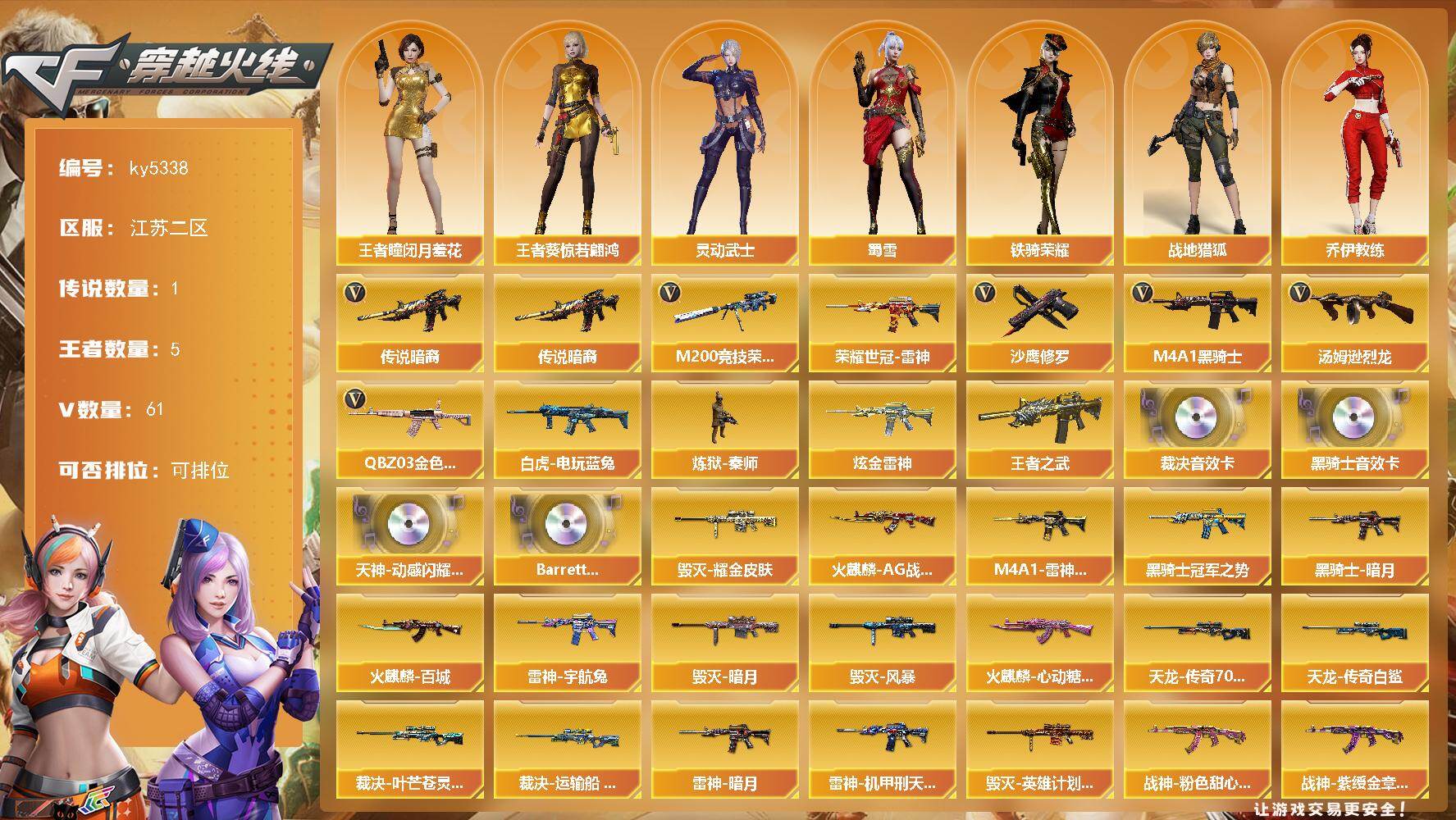 南方大区-44V-33王者武器数-3炫金武器数【热门武器】:M200-幻神,