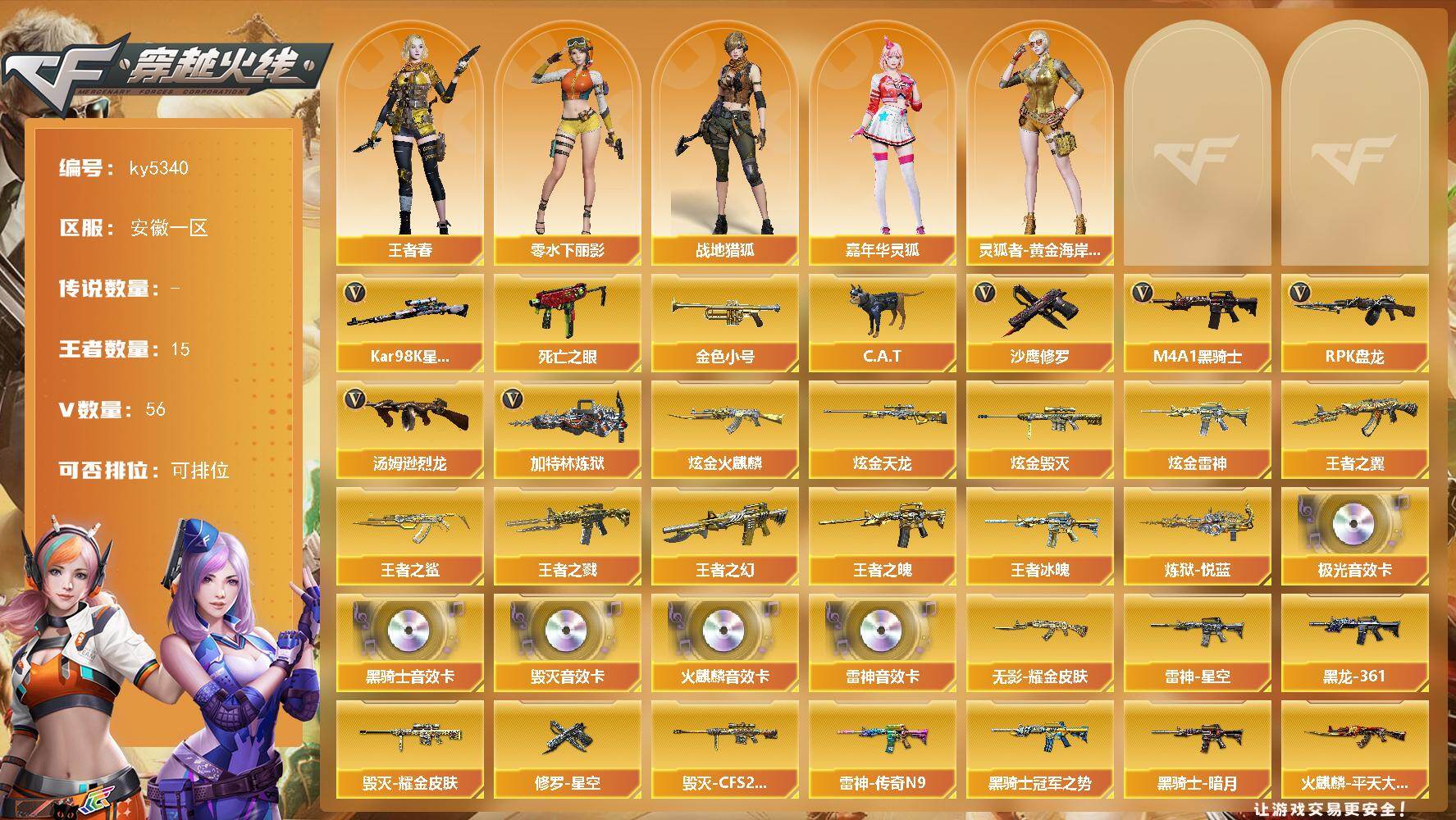 安徽一区-62V-15王者武器数-8炫金武器数【热门武器】:死亡之眼,Kar