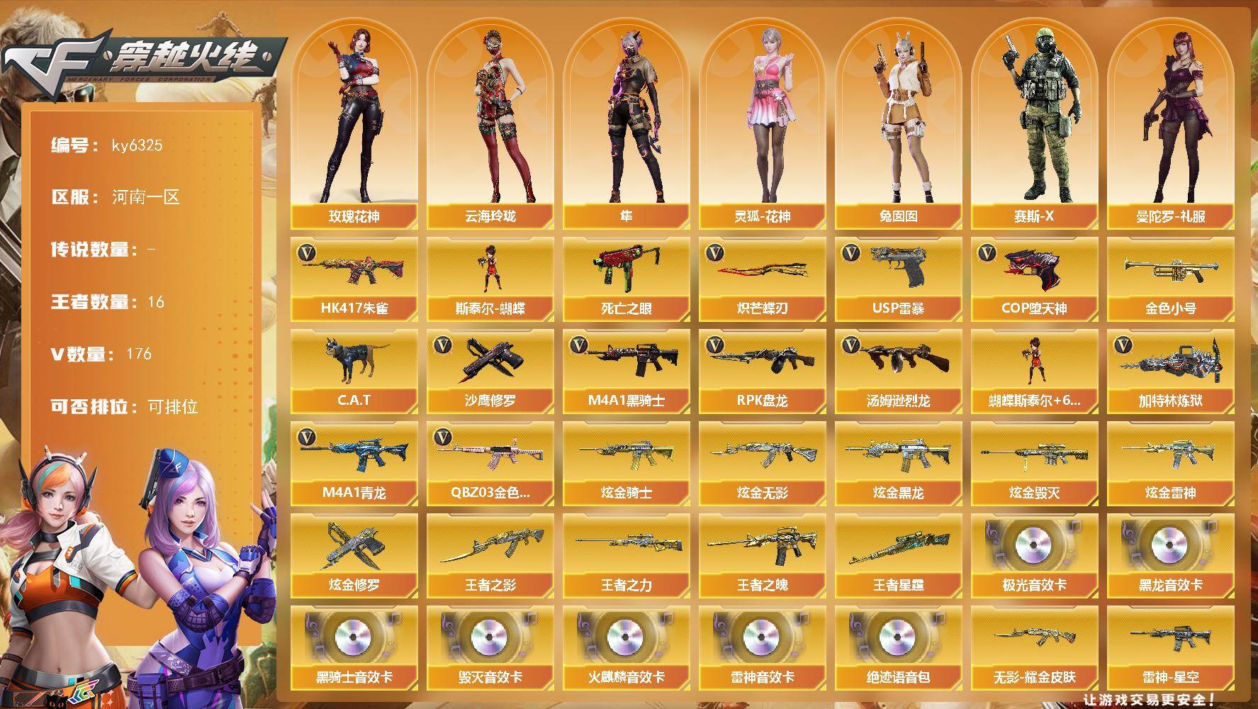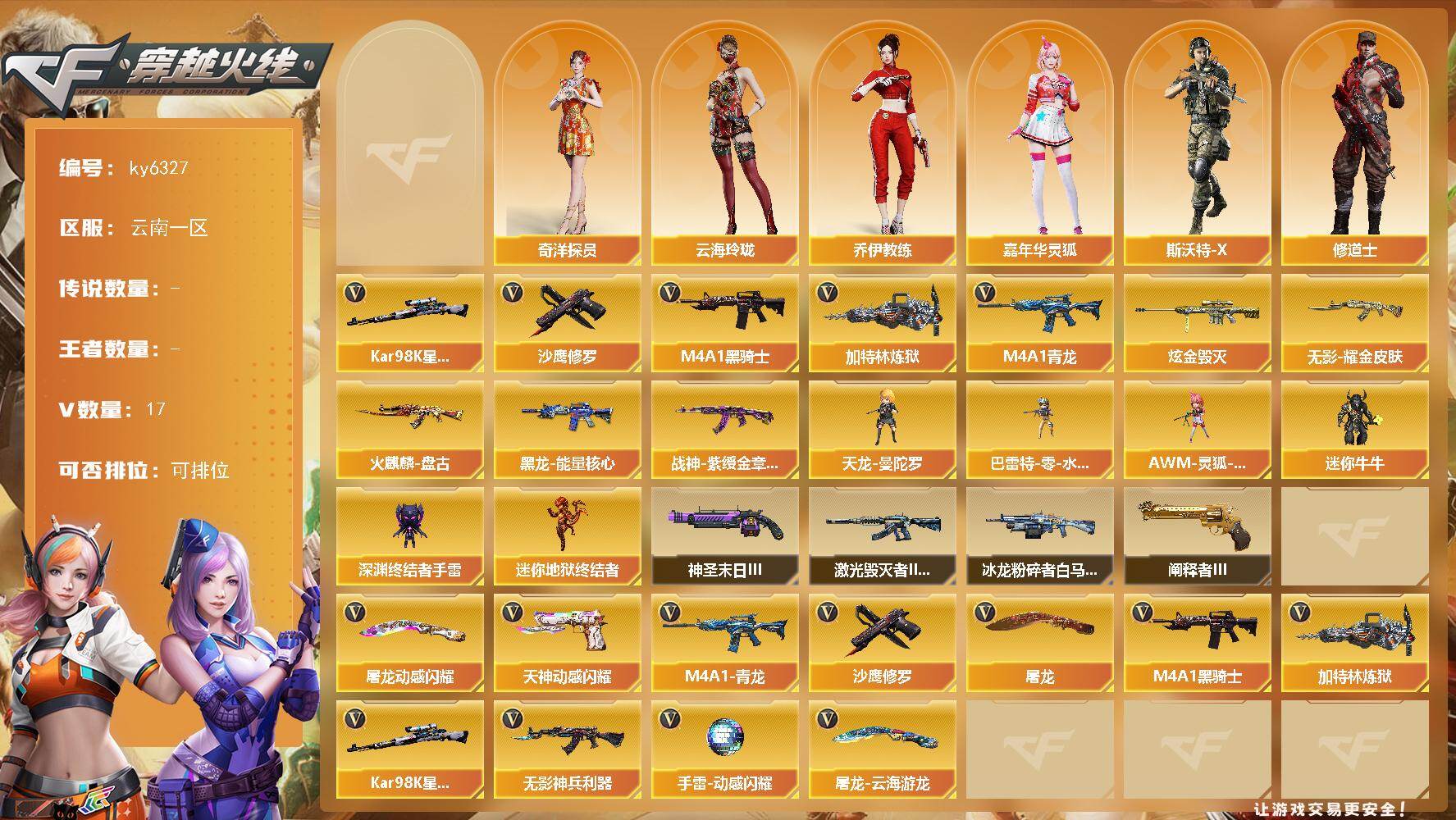 云南一区-17V-0王者武器数-2炫金武器数【热门武器】:M4A1-青龙,K