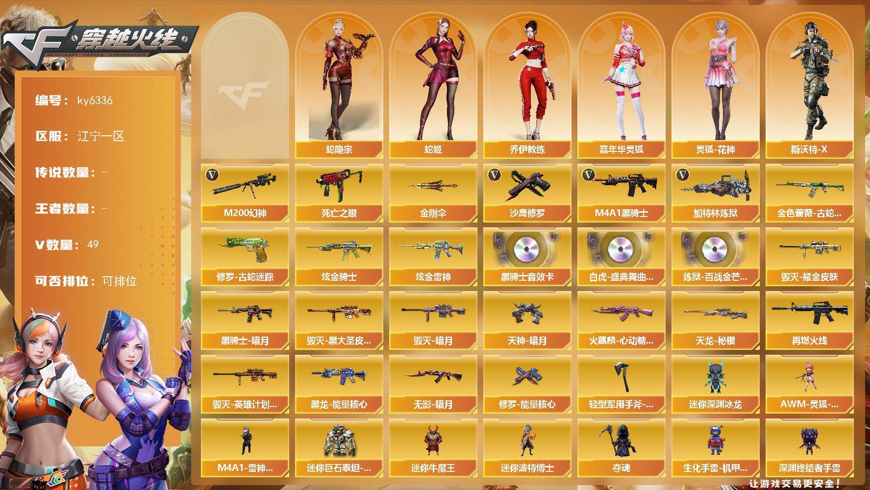 辽宁一区-49V-0王者武器数-2炫金武器数【热门武器】:M200-幻神,金