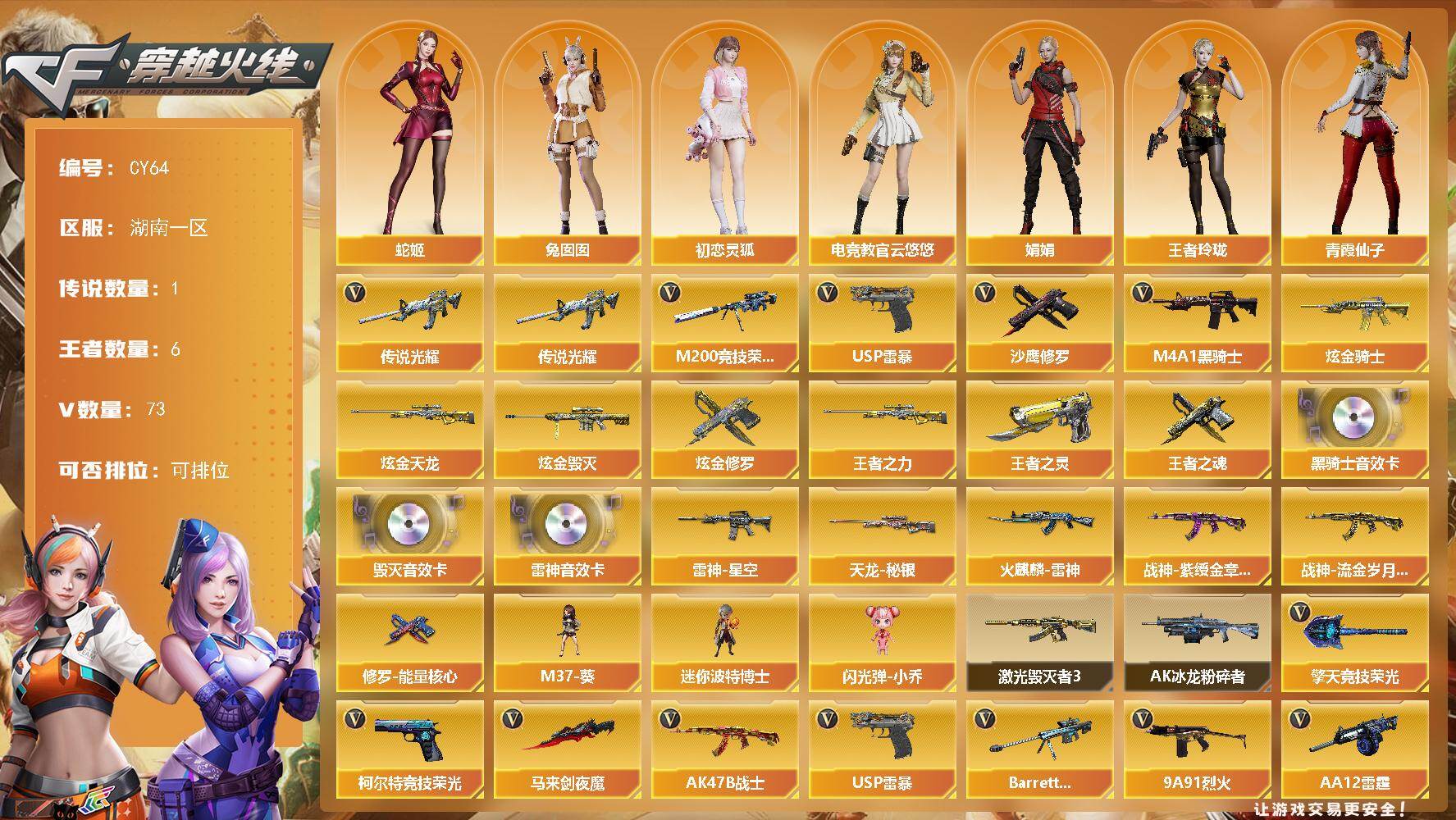 【CY64】湖南一区-76V-6王者武器数-5炫金武器数【传说武器】:传说光