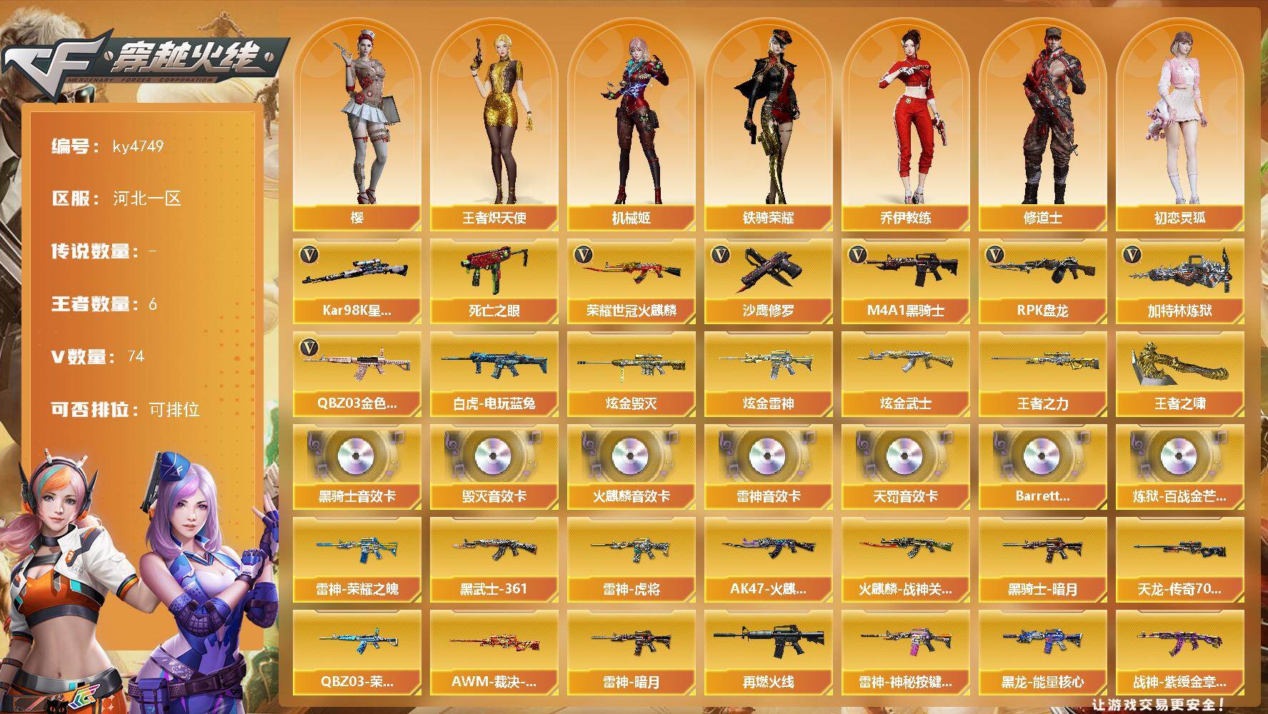 陕西一区-47V-2王者-2炫金【热门武器】:QBZ03-金色蔷薇,Scar