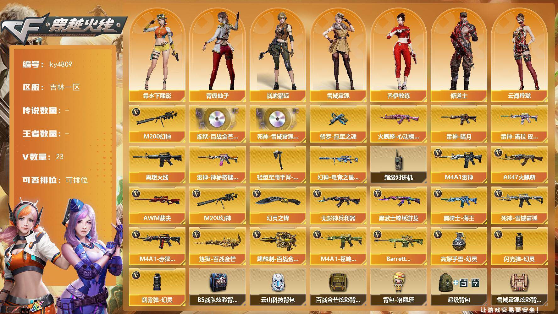 吉林一区-23V-0王者-0炫金【热门武器】:M200-幻神【音效卡】:炼
