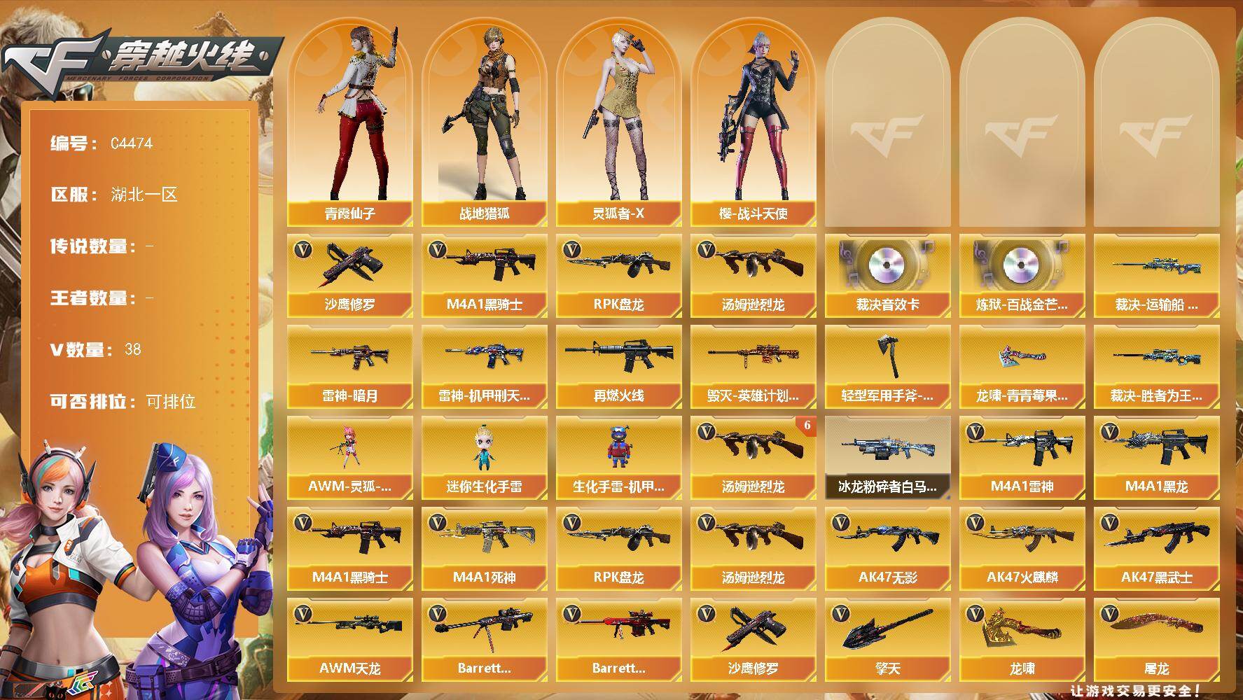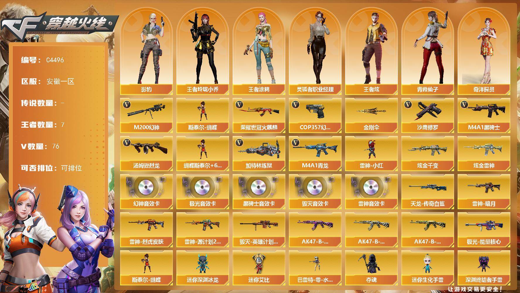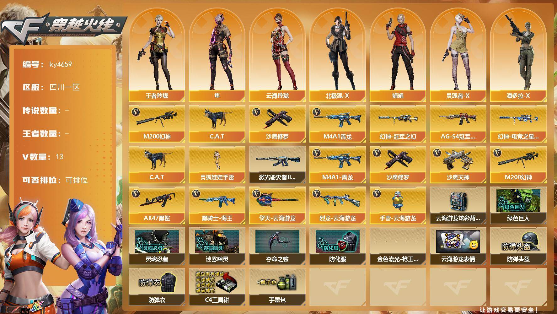 四川一区-13V-0王者-0炫金【热门武器】:M4A1-青龙,M200-幻神