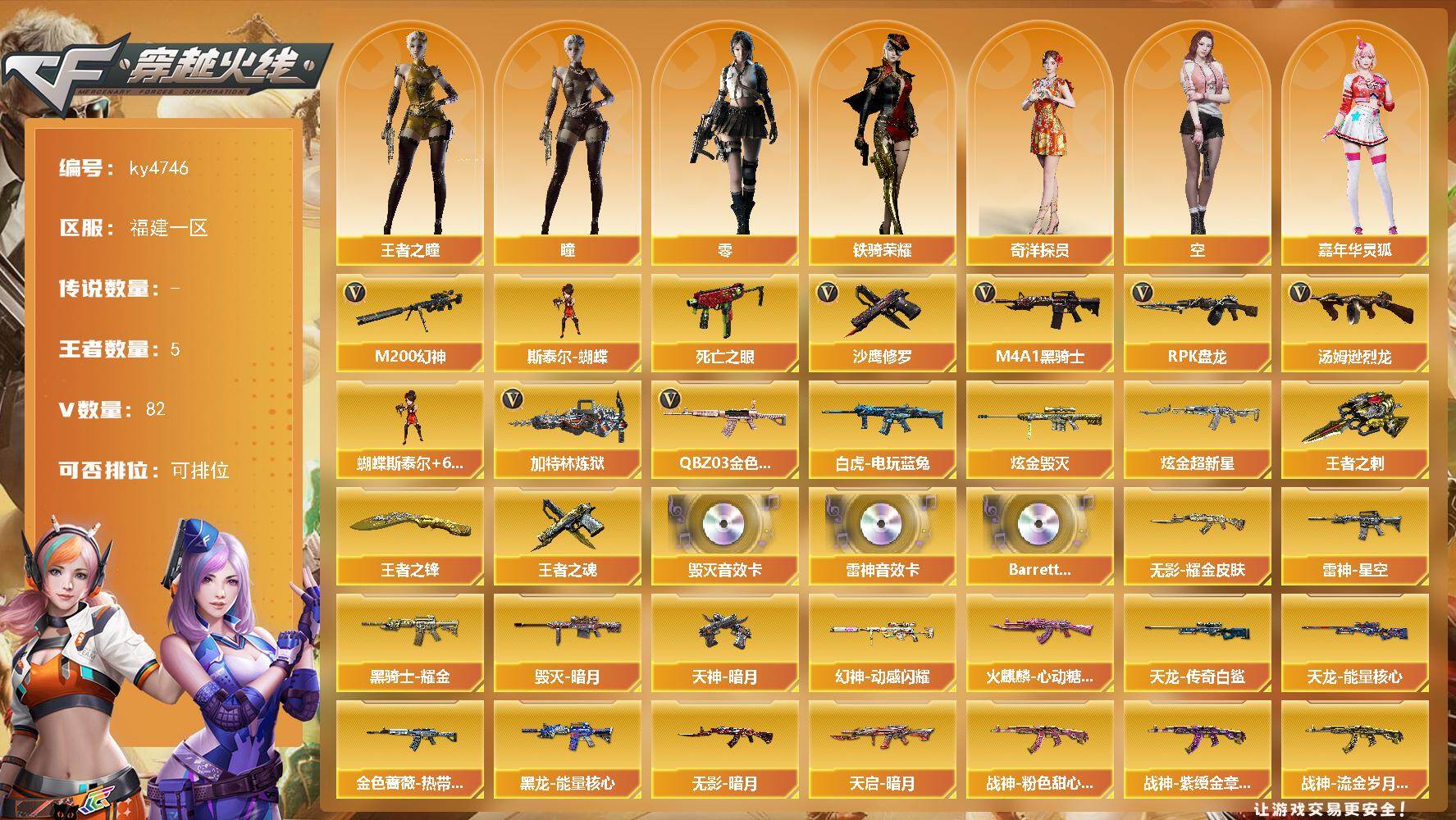 福建一区-82V-5王者-2炫金【热门武器】:QBZ03-金色蔷薇,M200