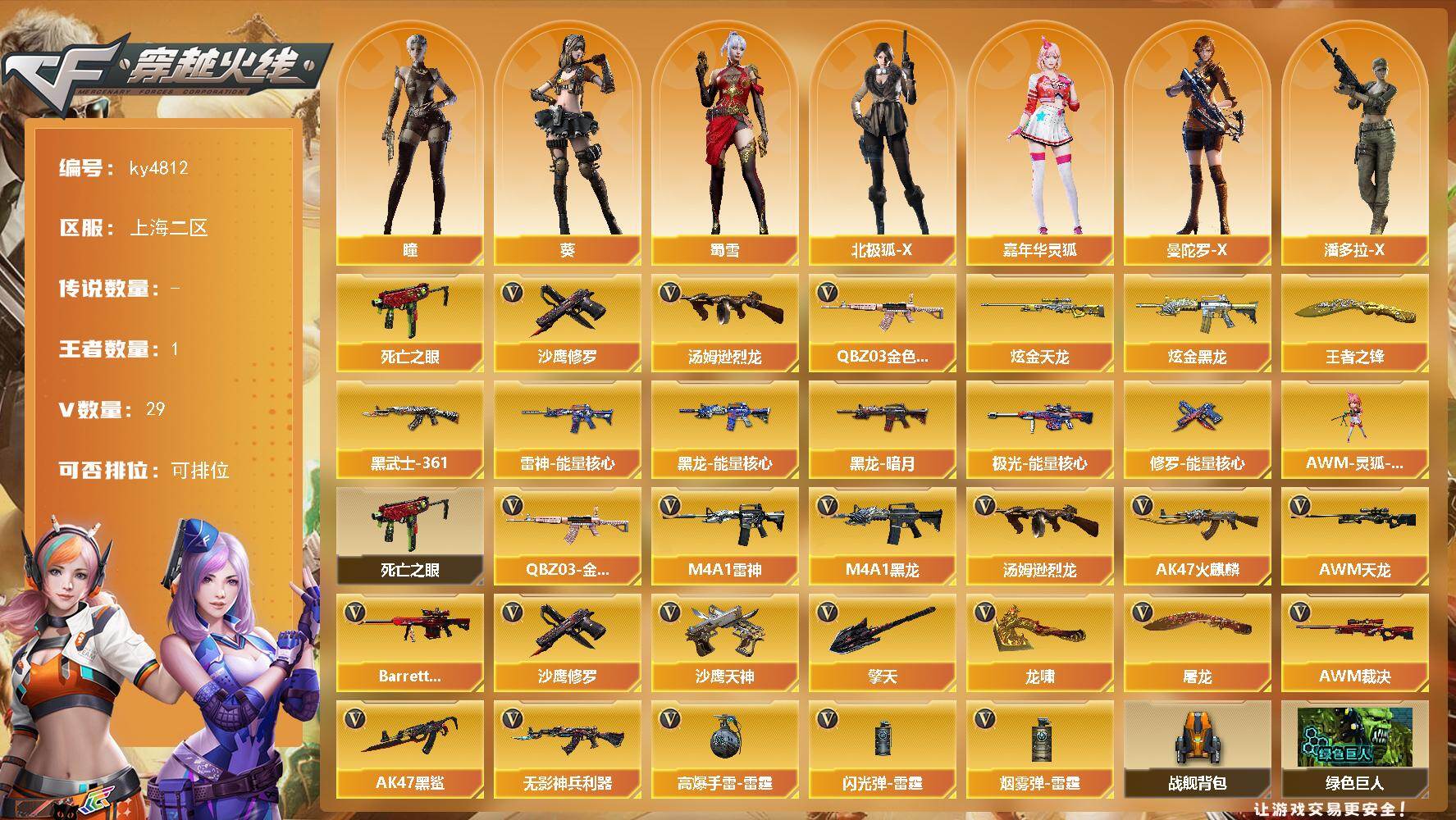 上海二区-29V-1王者-2炫金【热门武器】:QBZ03-金色蔷薇,死亡之眼