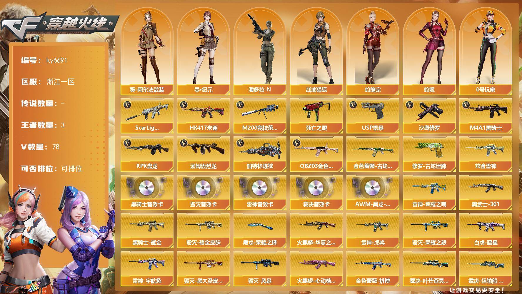 精品小号,各种音效卡,爆破生化号,7烈龙53v,多个4防角色,可以二次实名,