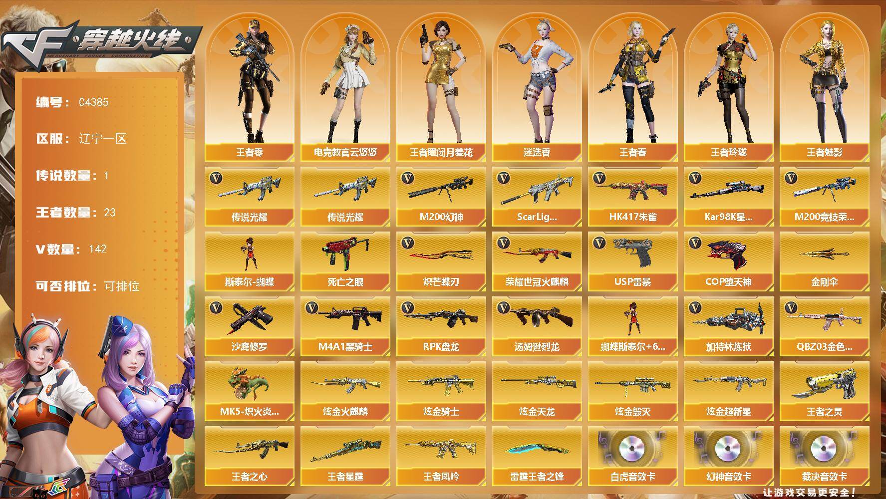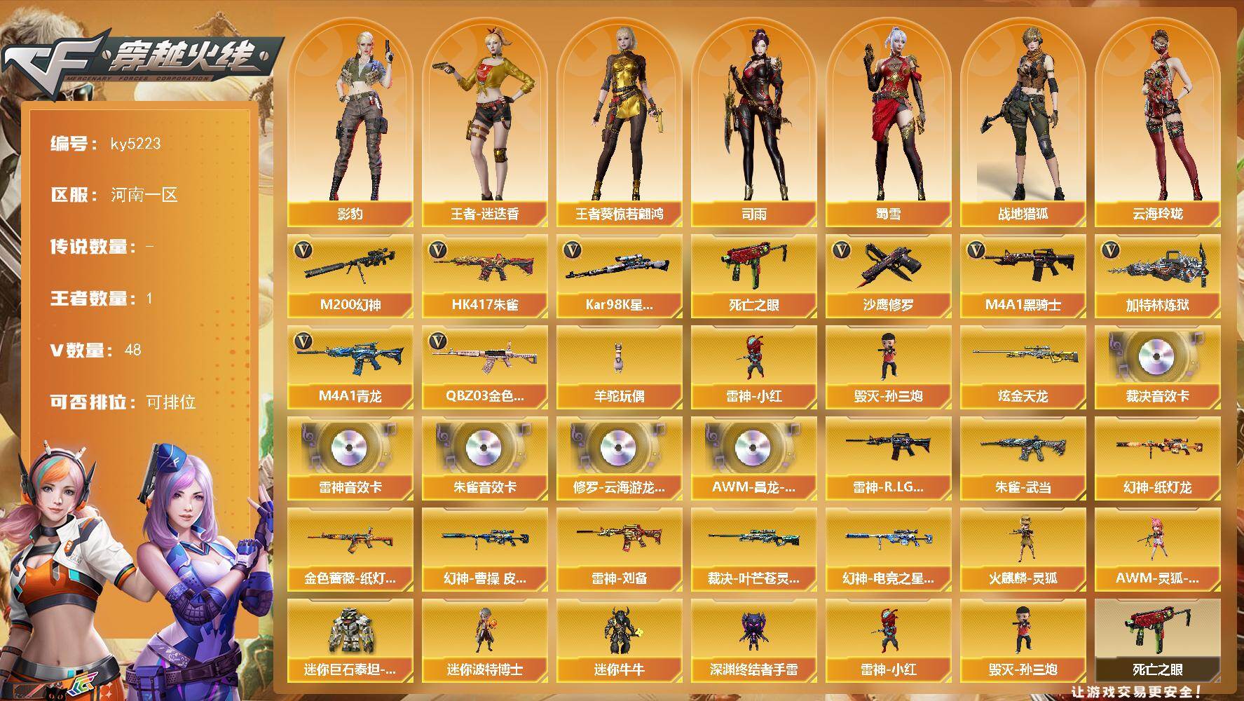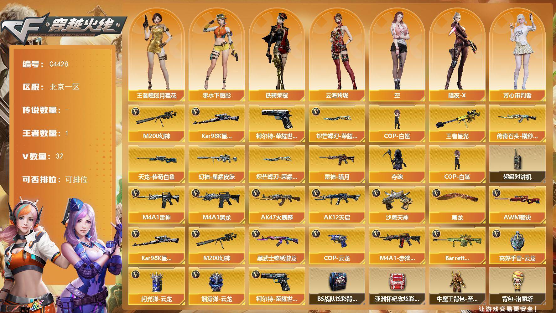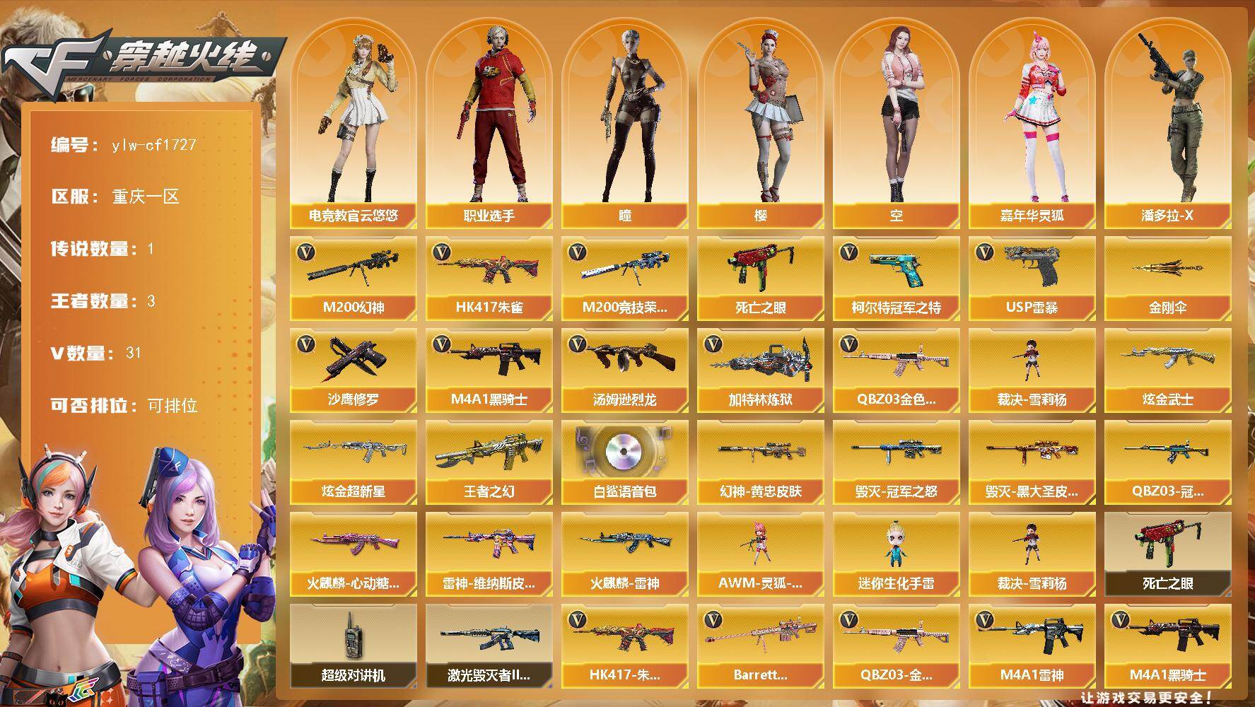重庆一区-31V-3王者-2炫金【传说角色】:传说星骇【热门武器】:QBZ