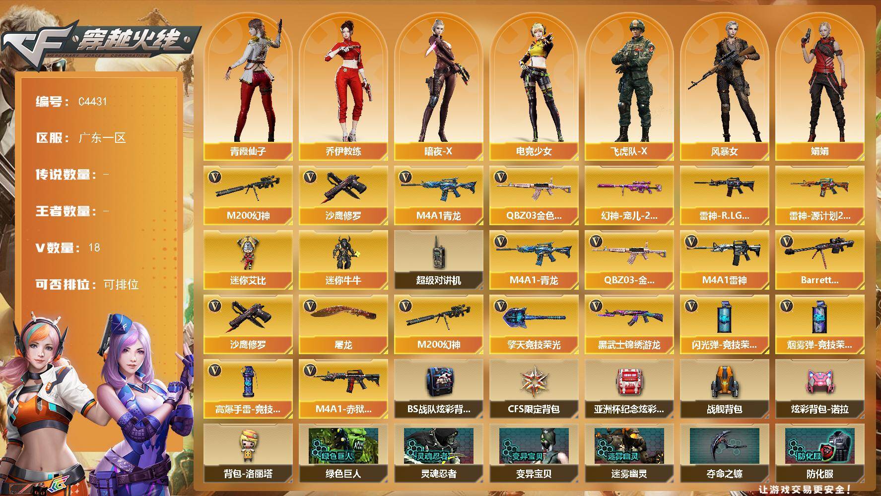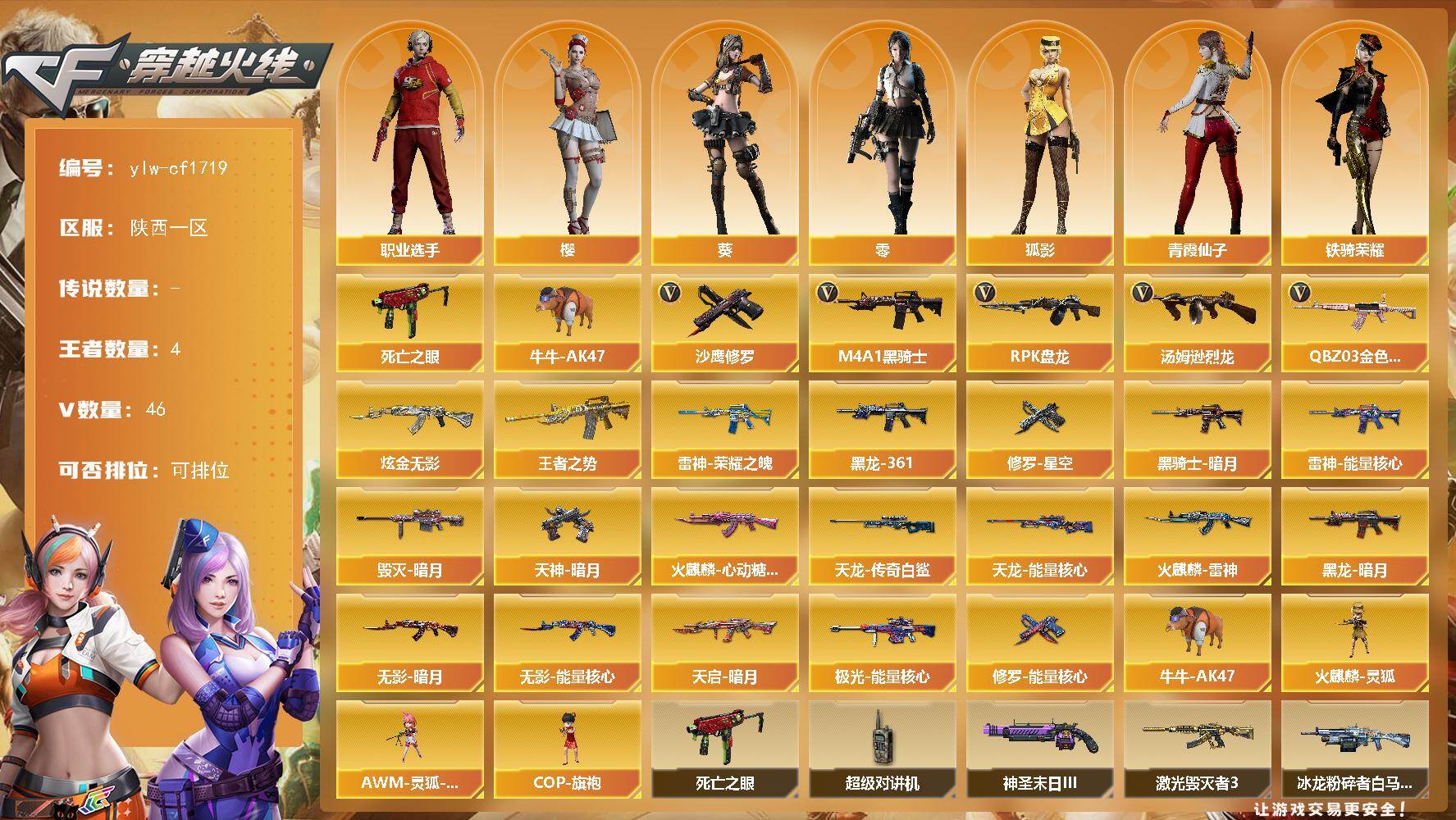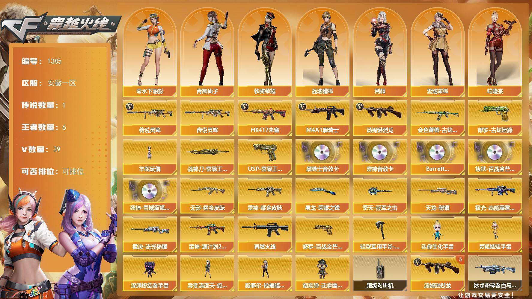 重庆一区-31V-3王者-2炫金【传说角色】:传说星骇【热门武器】:QBZ