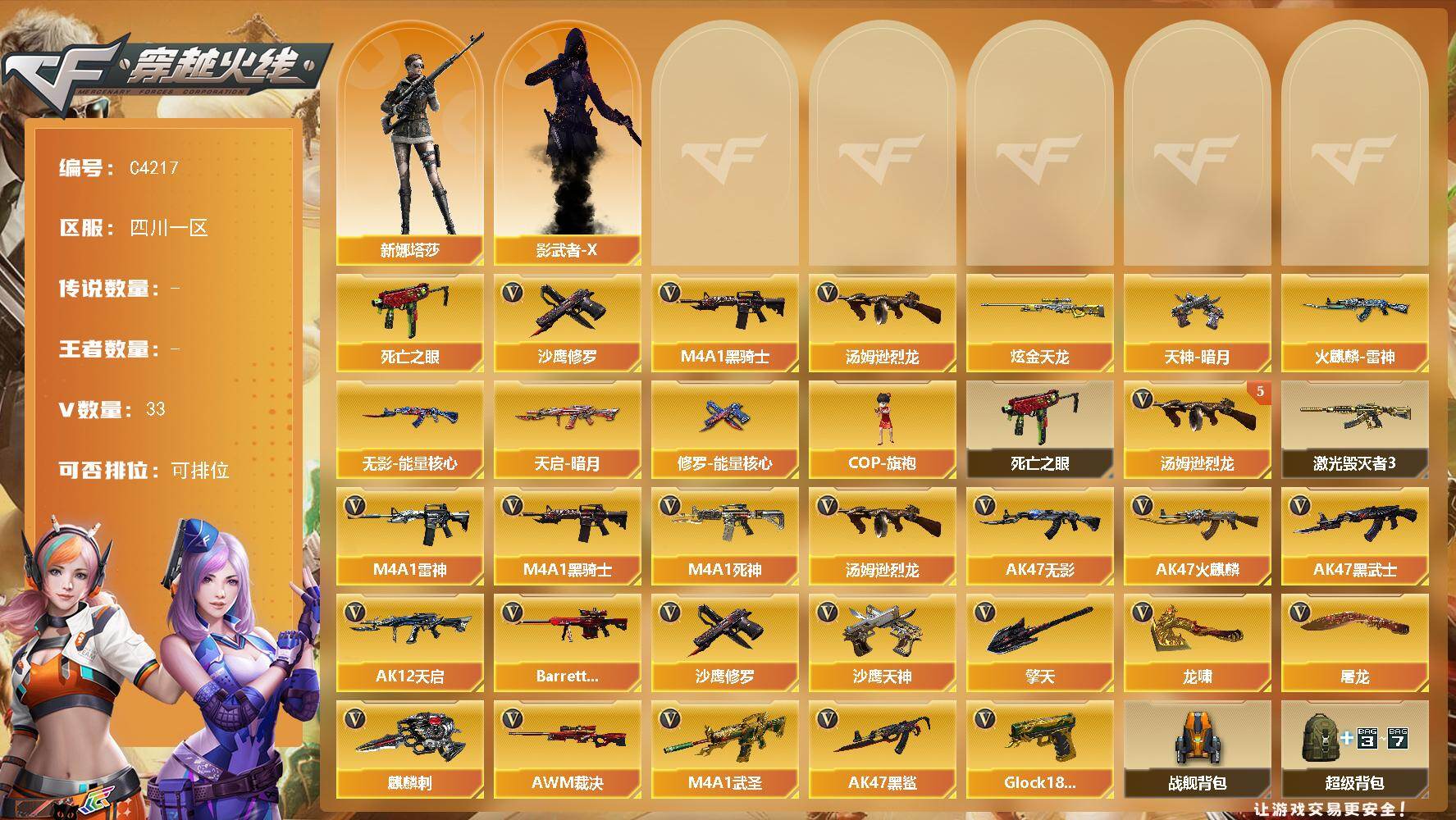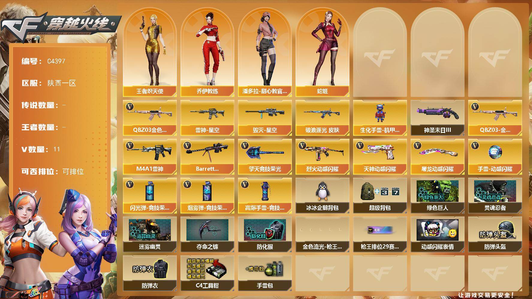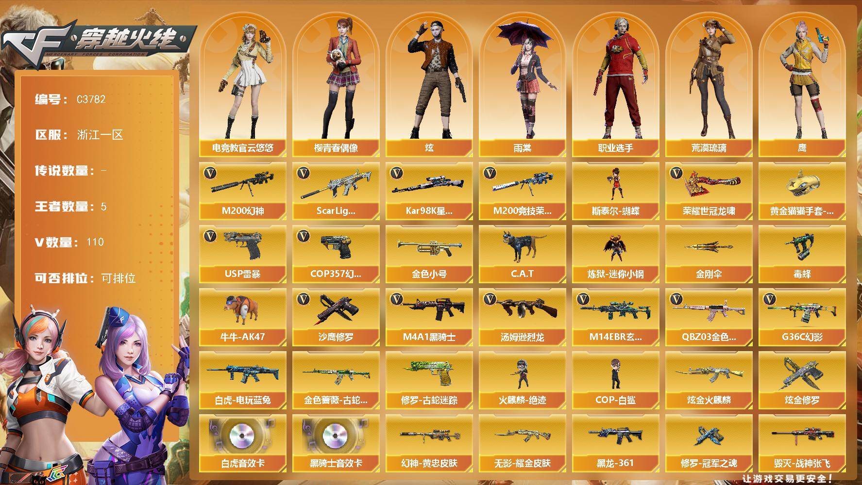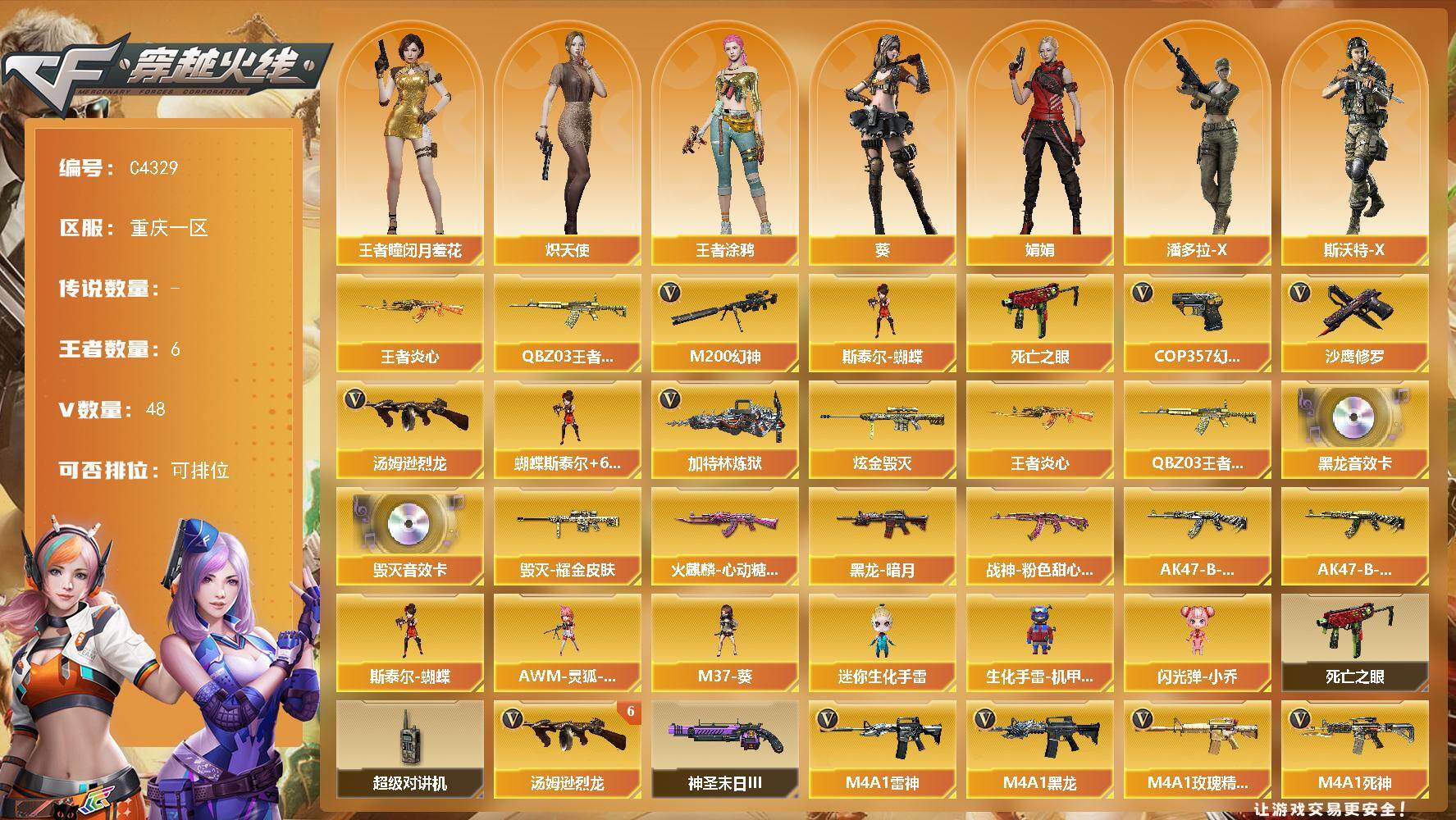 重庆一区-31V-3王者-2炫金【传说角色】:传说星骇【热门武器】:QBZ