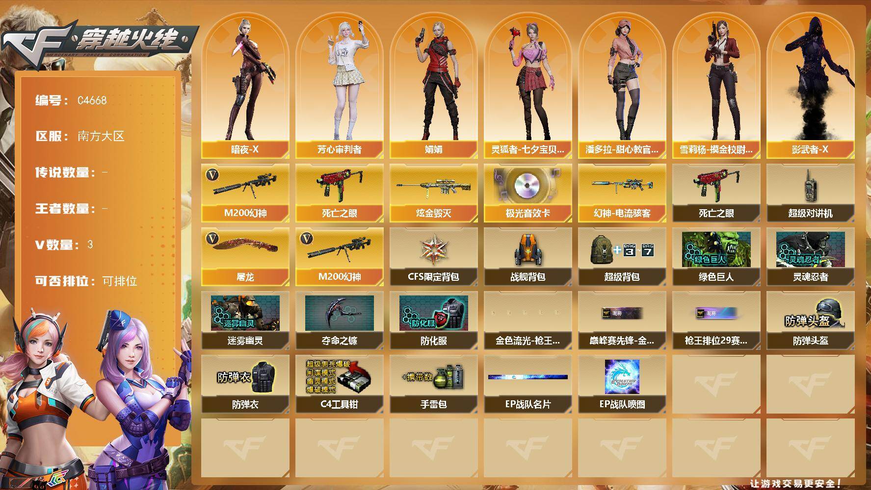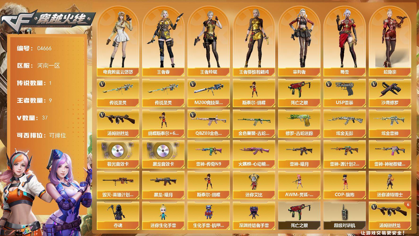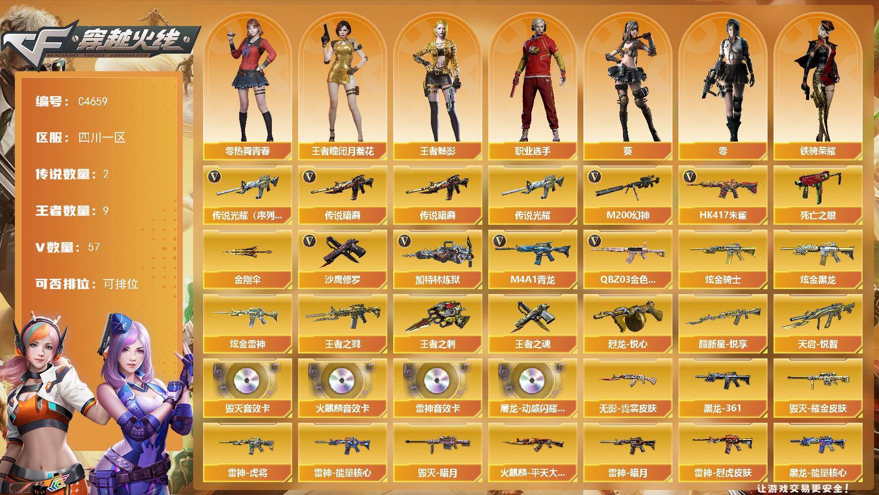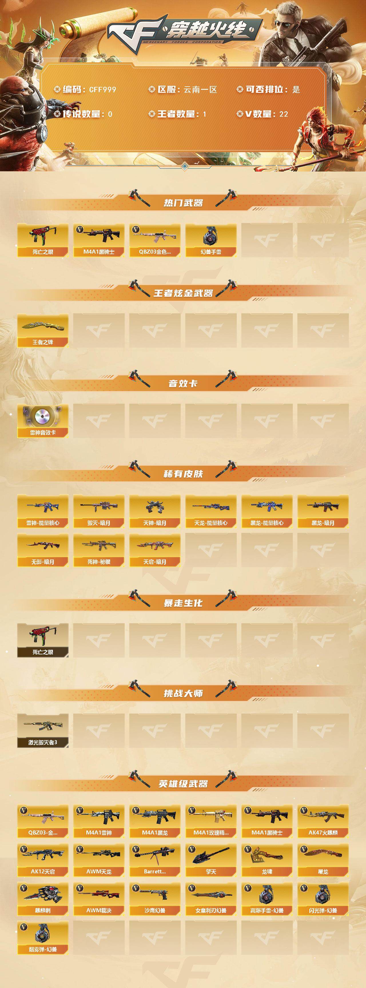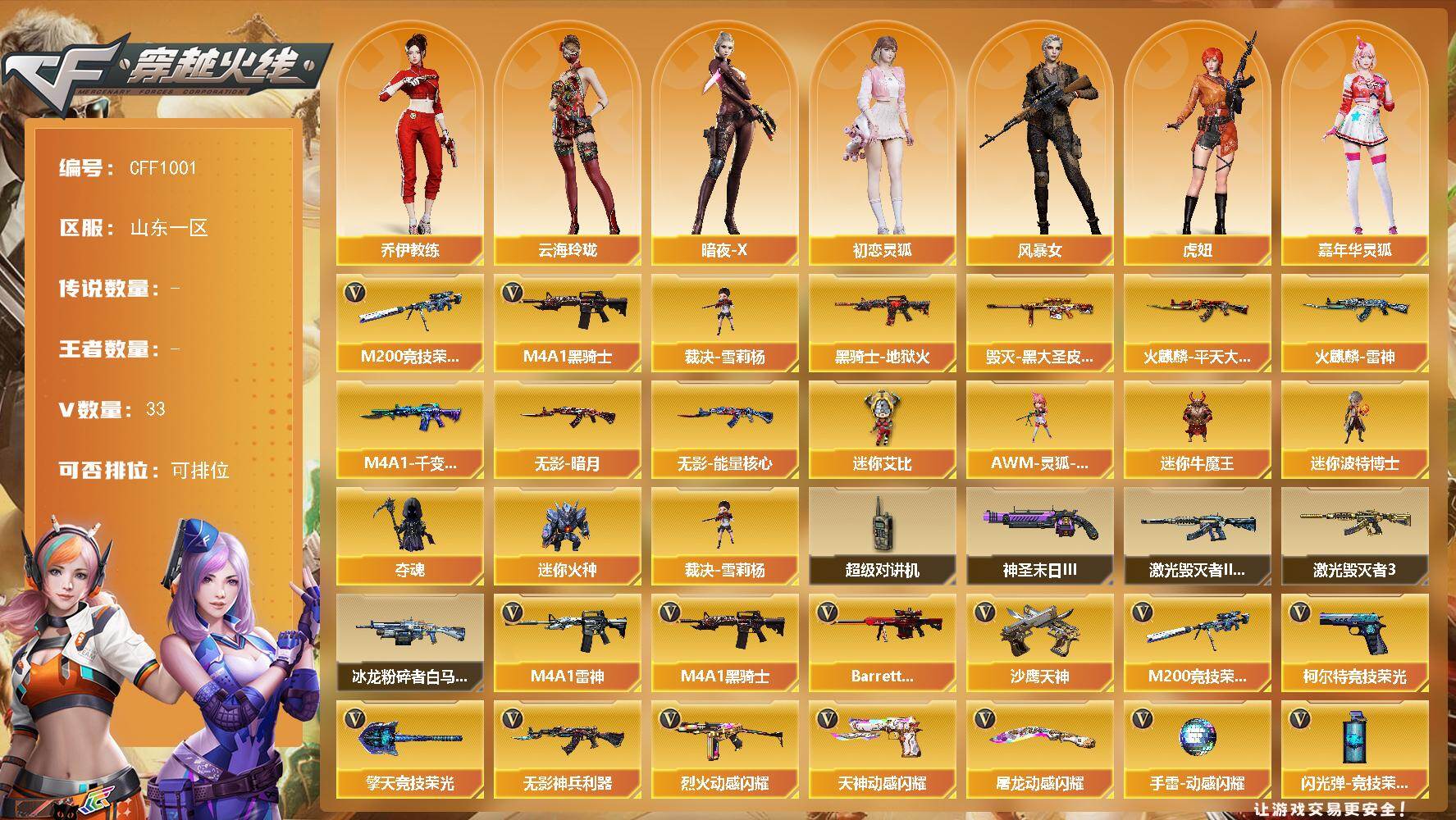 33V/100级/元帅/M200_竞技荣光/M4A1_黑骑士/裁决-雪莉杨/火麒麟-雷神