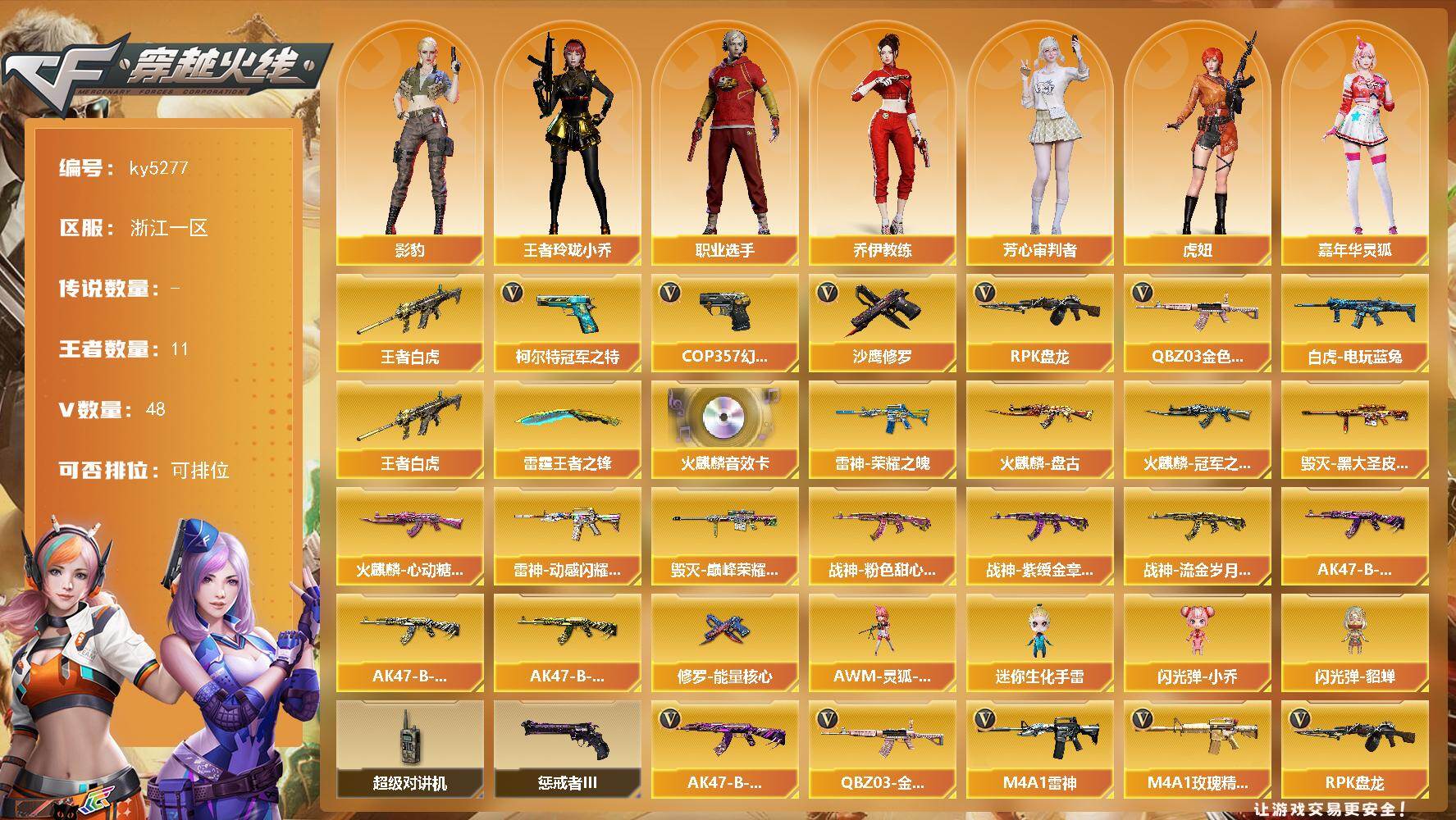 浙江一区-56V-11王者武器数-0炫金武器数【热门武器】:王者白虎,QBZ