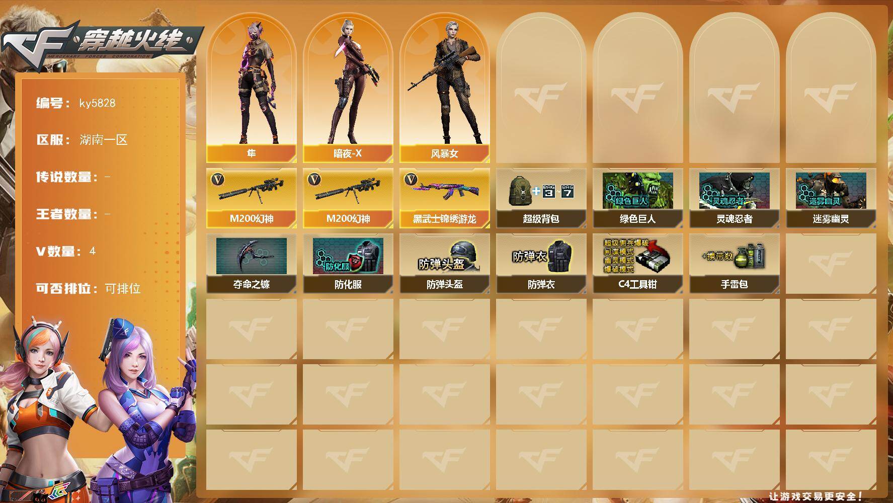 湖南一区-4V-0王者武器数-0炫金武器数【热门武器】:M200-幻神【角