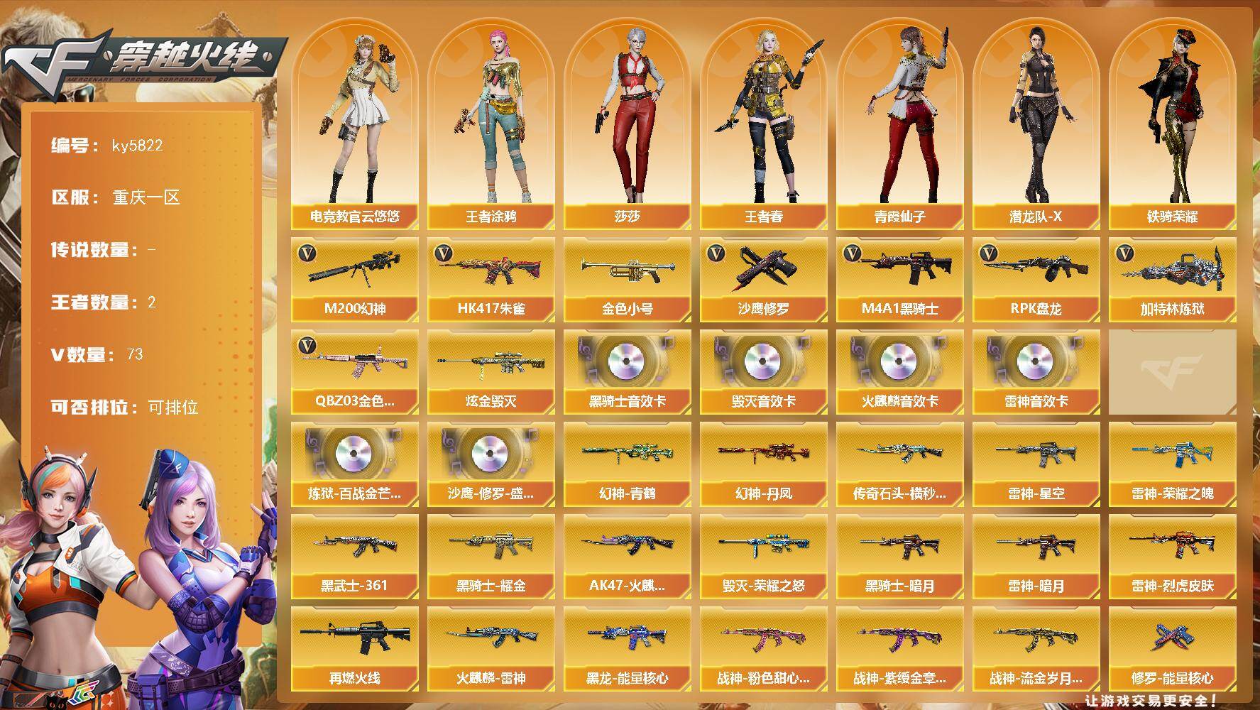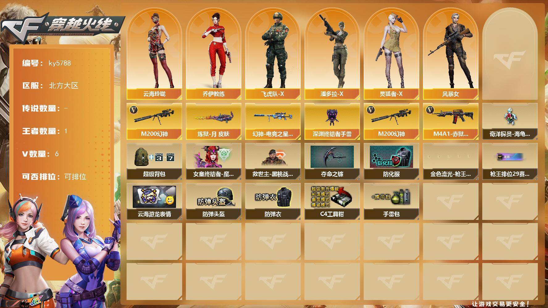 广东一区-11V-5王者武器数-0炫金武器数【热门武器】:M200-幻神,死