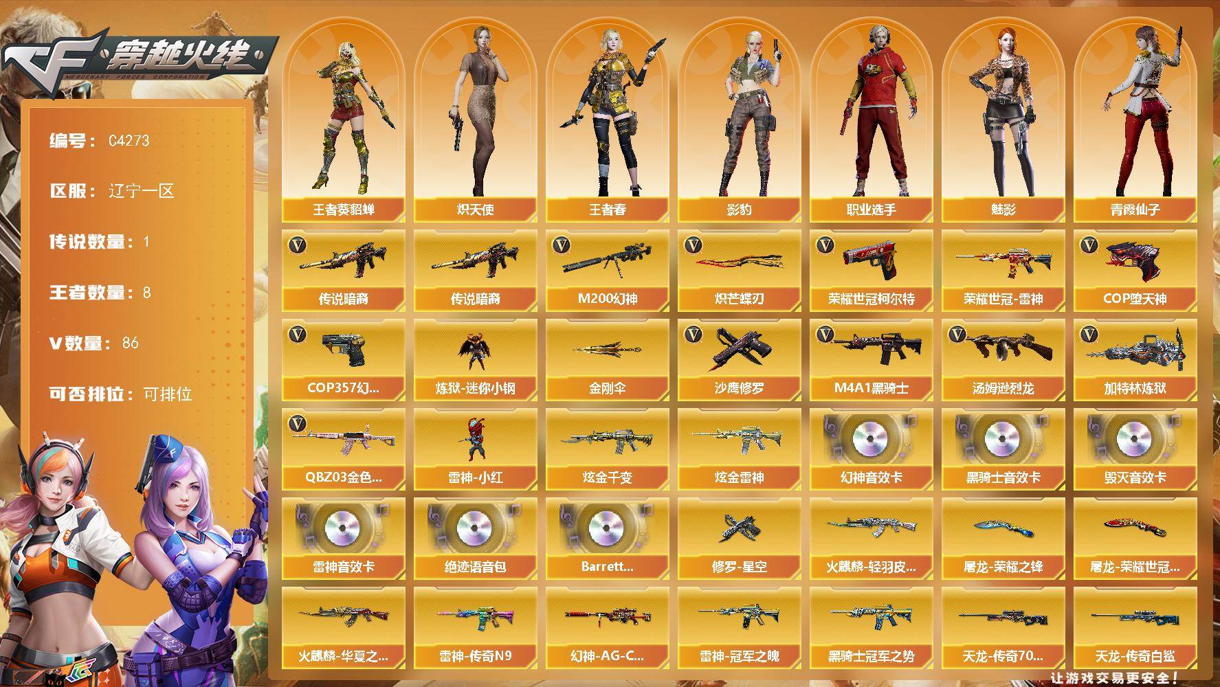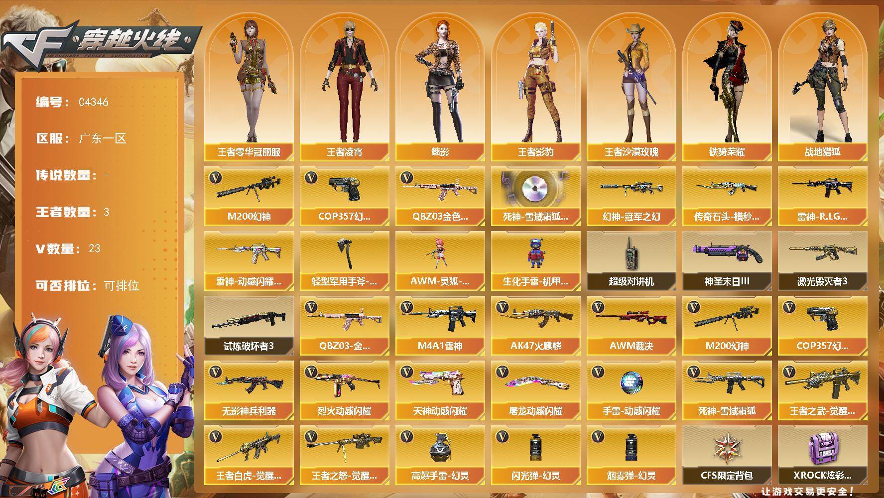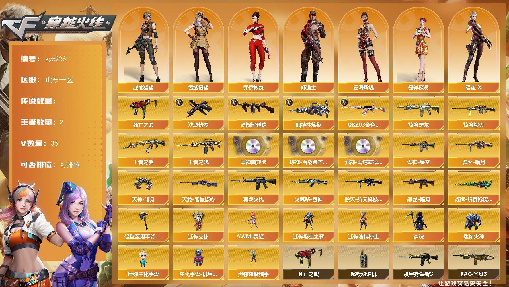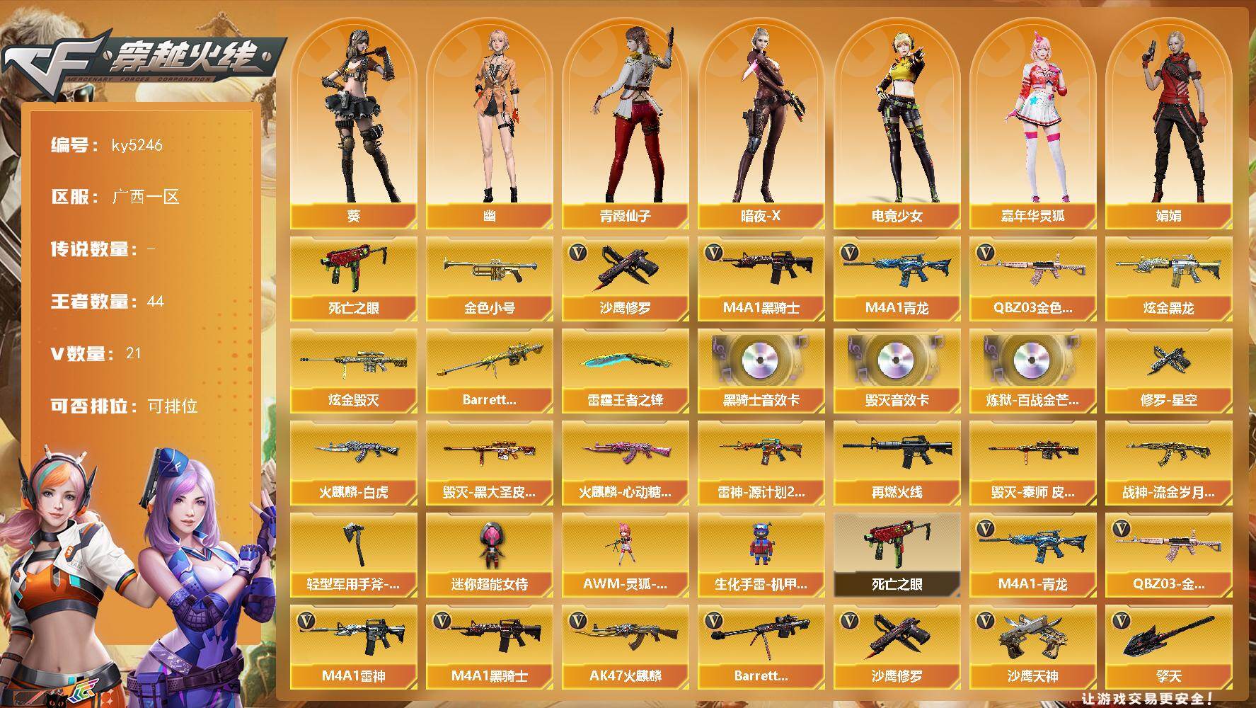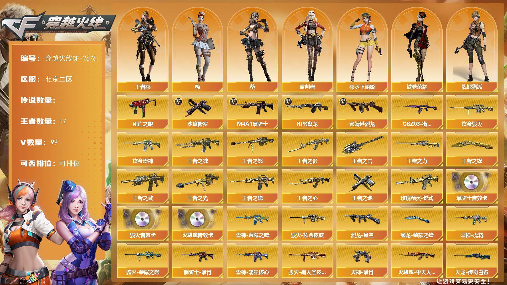 【商品标题】:北京二区-99V-17王者-2炫金【热门武器】:死亡之眼,QB