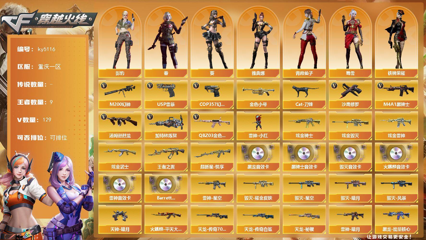 重庆一区-129V-9王者-4炫金【热门武器】:QBZ03-金色蔷薇,M20
