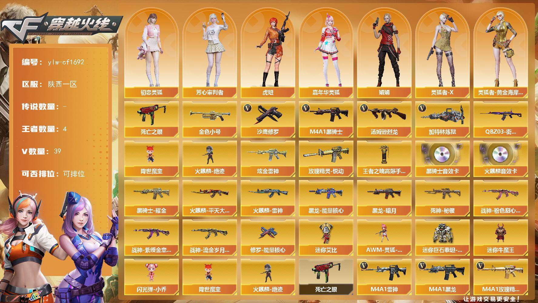 陕西一区-39V-4王者-1炫金【热门武器】:死亡之眼,QBZ03-街机,金