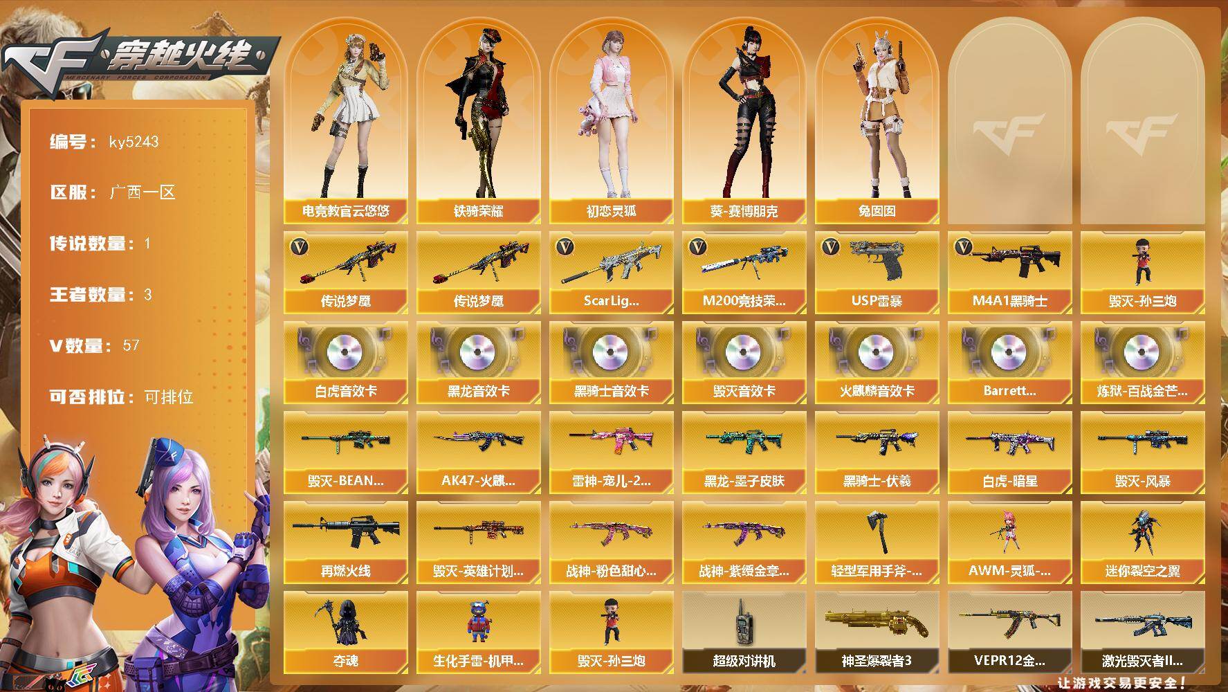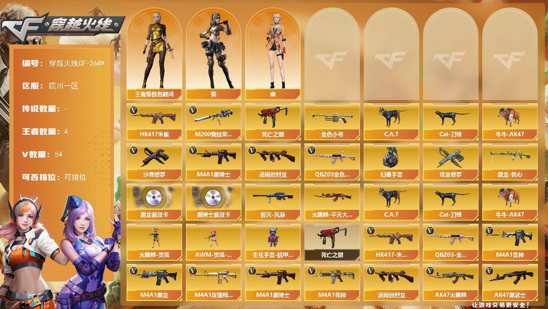 四川一区-65V-3王者-1炫金【热门武器】:死亡之眼,M4A1-黑骑士,沙
