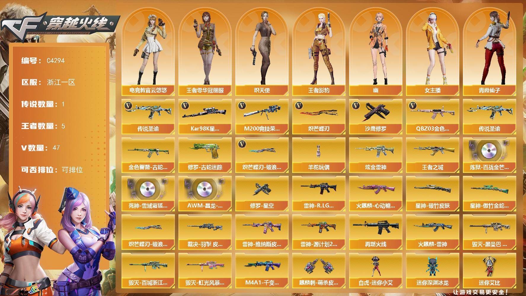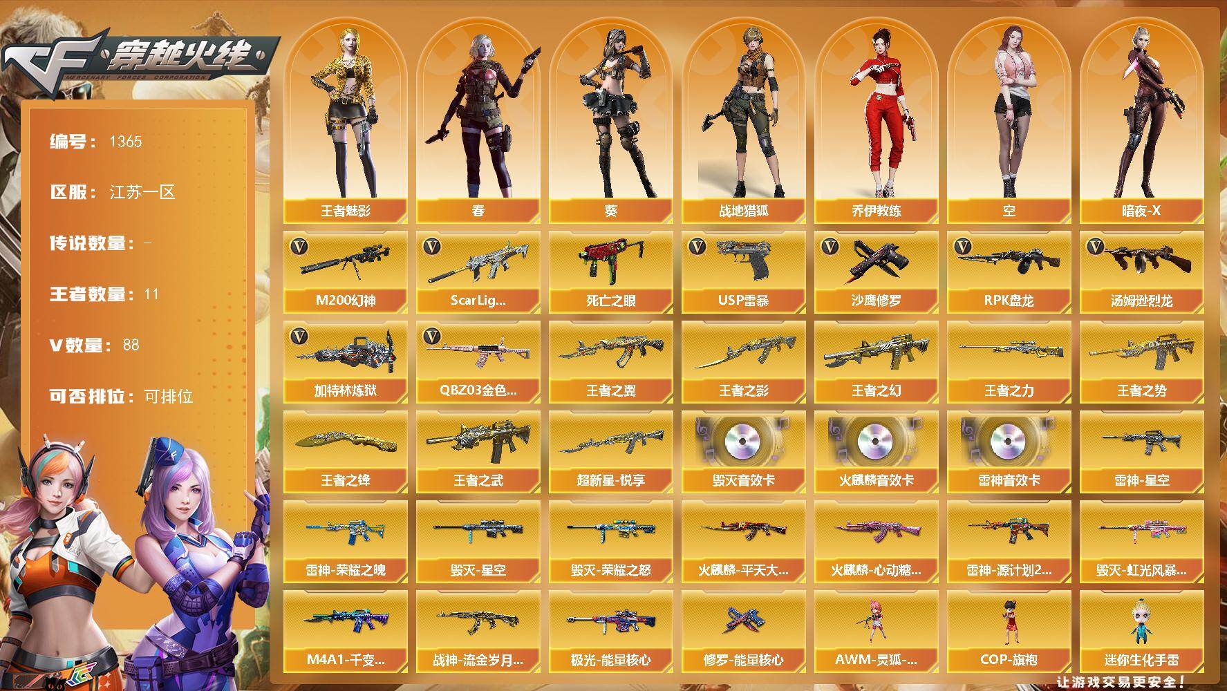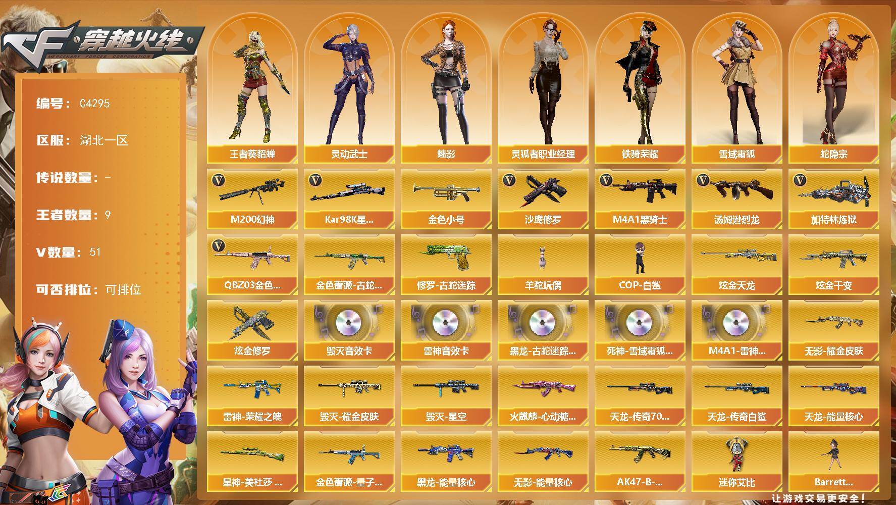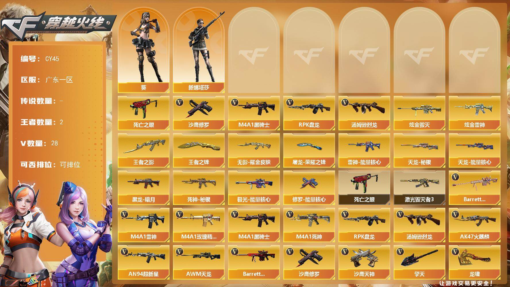 广东一区-29V-2王者-0炫金【热门武器】:M200-幻神,金色蔷薇-古蛇