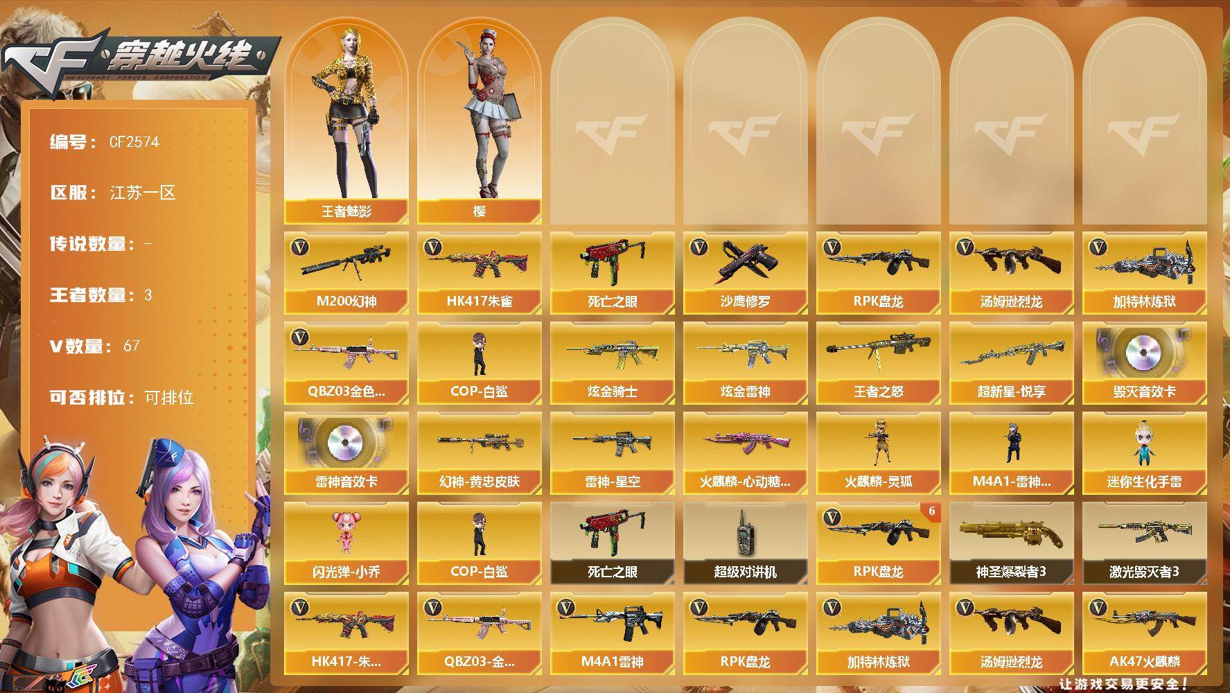 广东一区-39V-0王者-0炫金【热门武器】:G36C-幻影,白虎-电玩蓝兔