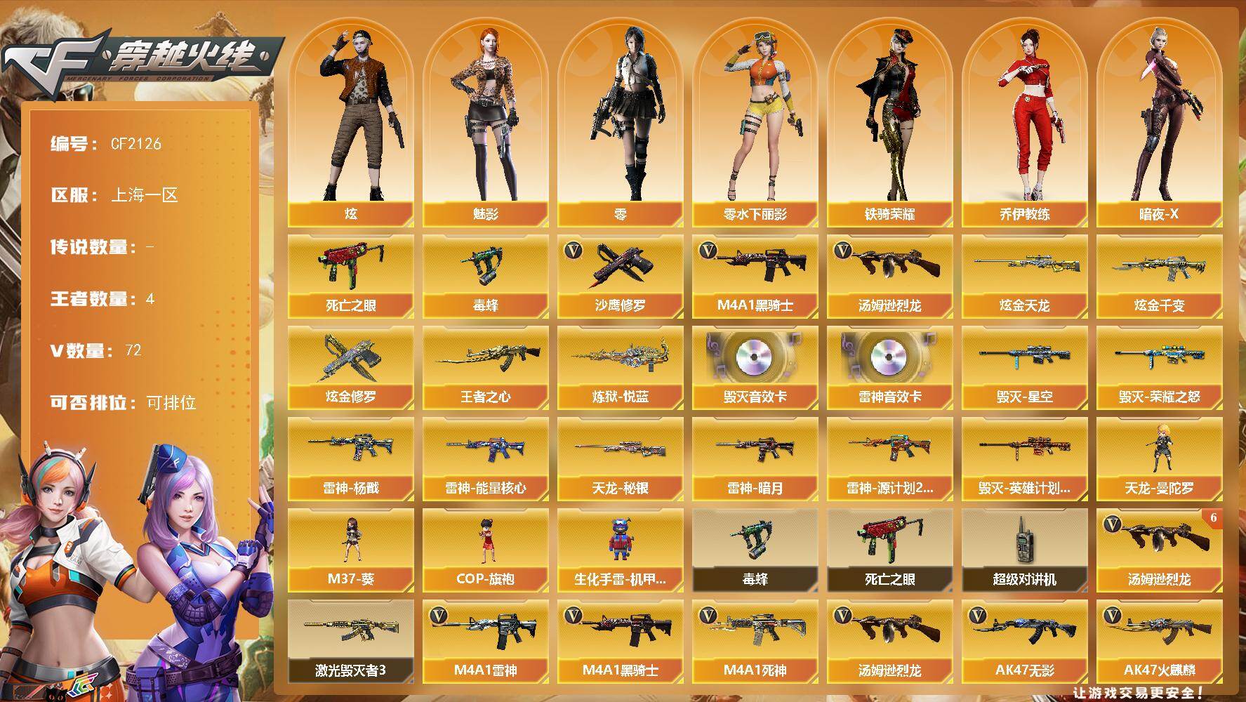 上海一区-72V-4王者-4炫金
