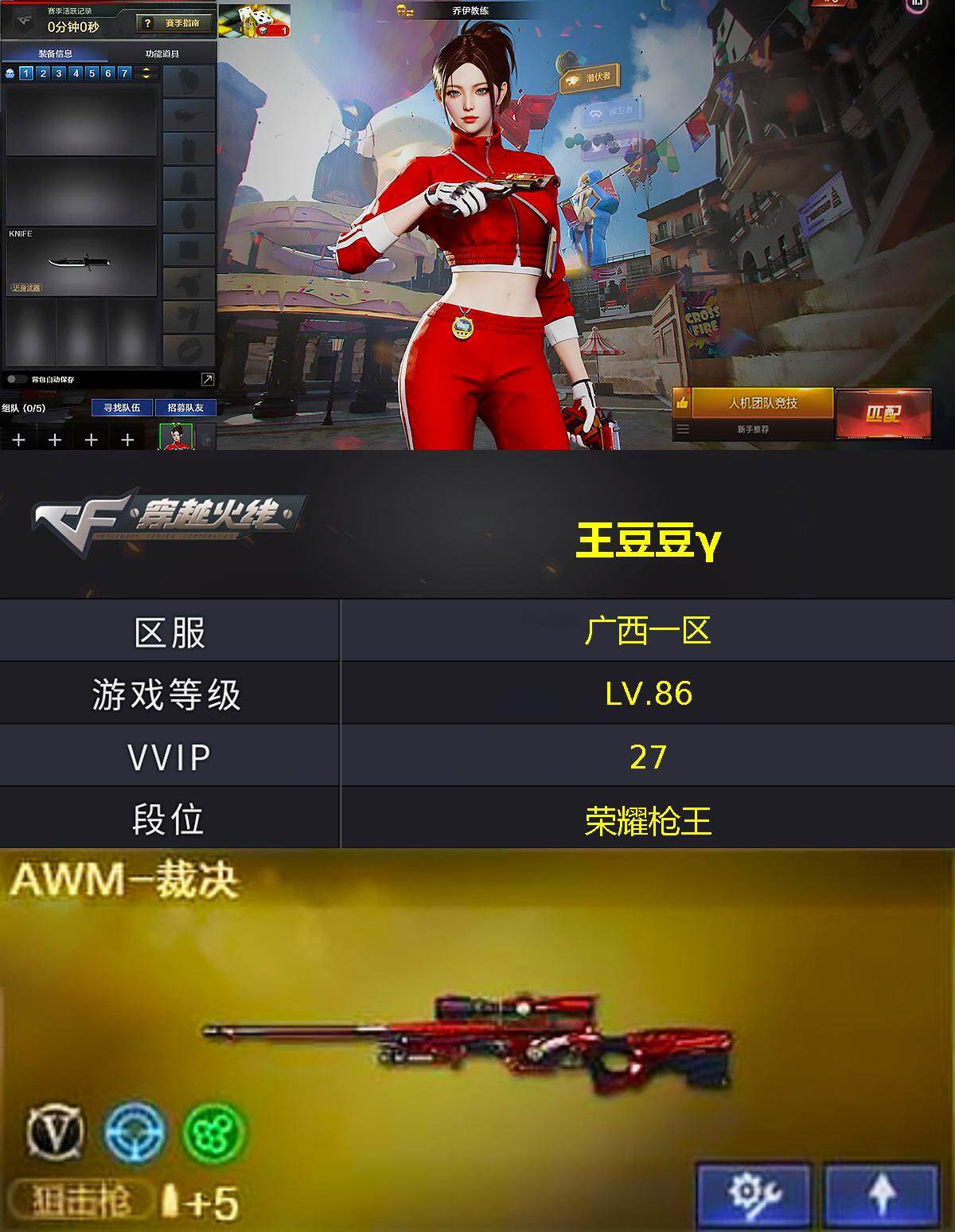 【等级】86【区服】广西一区【英雄角色】1【英雄武器】21【炫金级武器】炫金