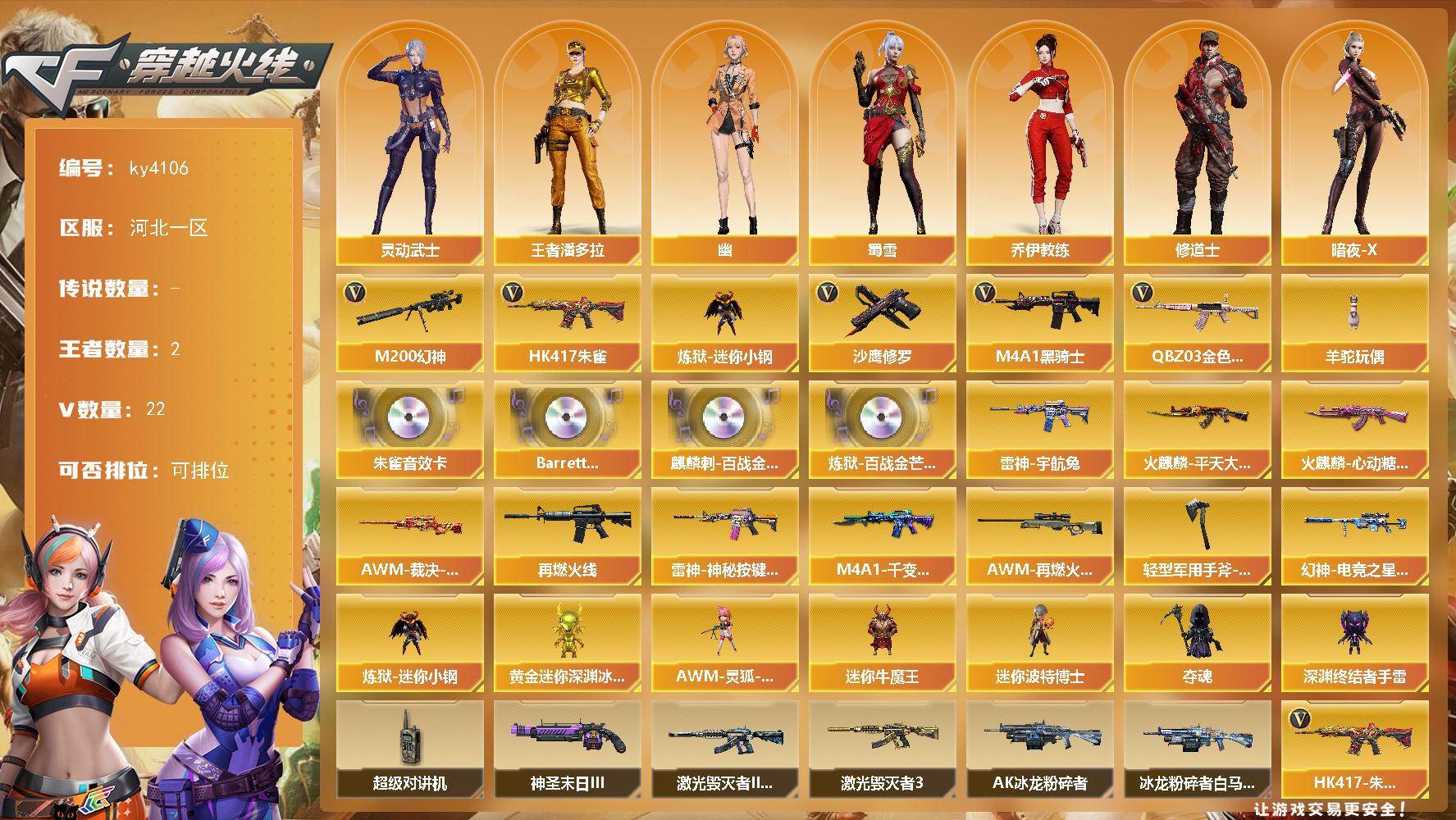 河北一区-22V-2王者-0炫金【热门武器】:QBZ03-金色蔷薇,HK41