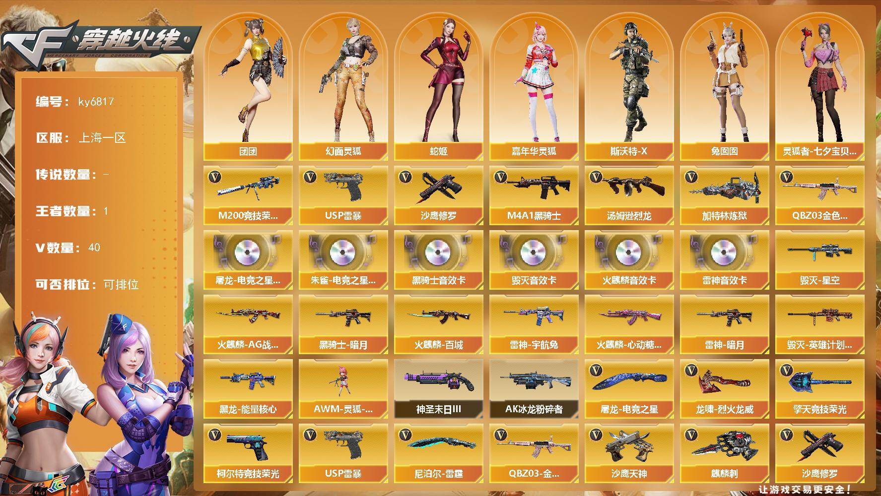 上海一区-35V-3王者武器数-0炫金武器数【热门武器】:HK417-朱雀,