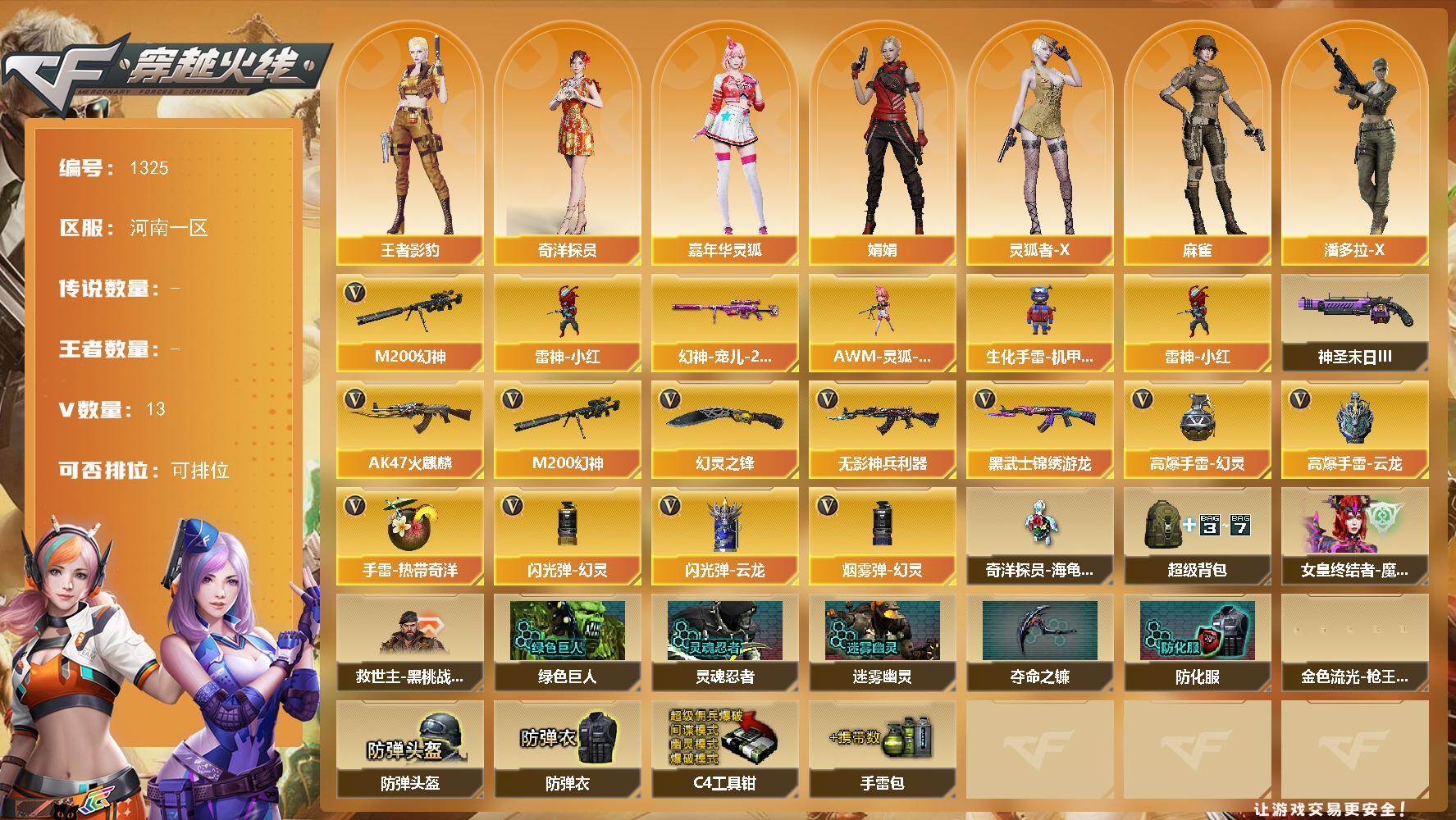 河南一区-13V-0王者-0炫金【热门武器】:M200-幻神,雷神-小红【