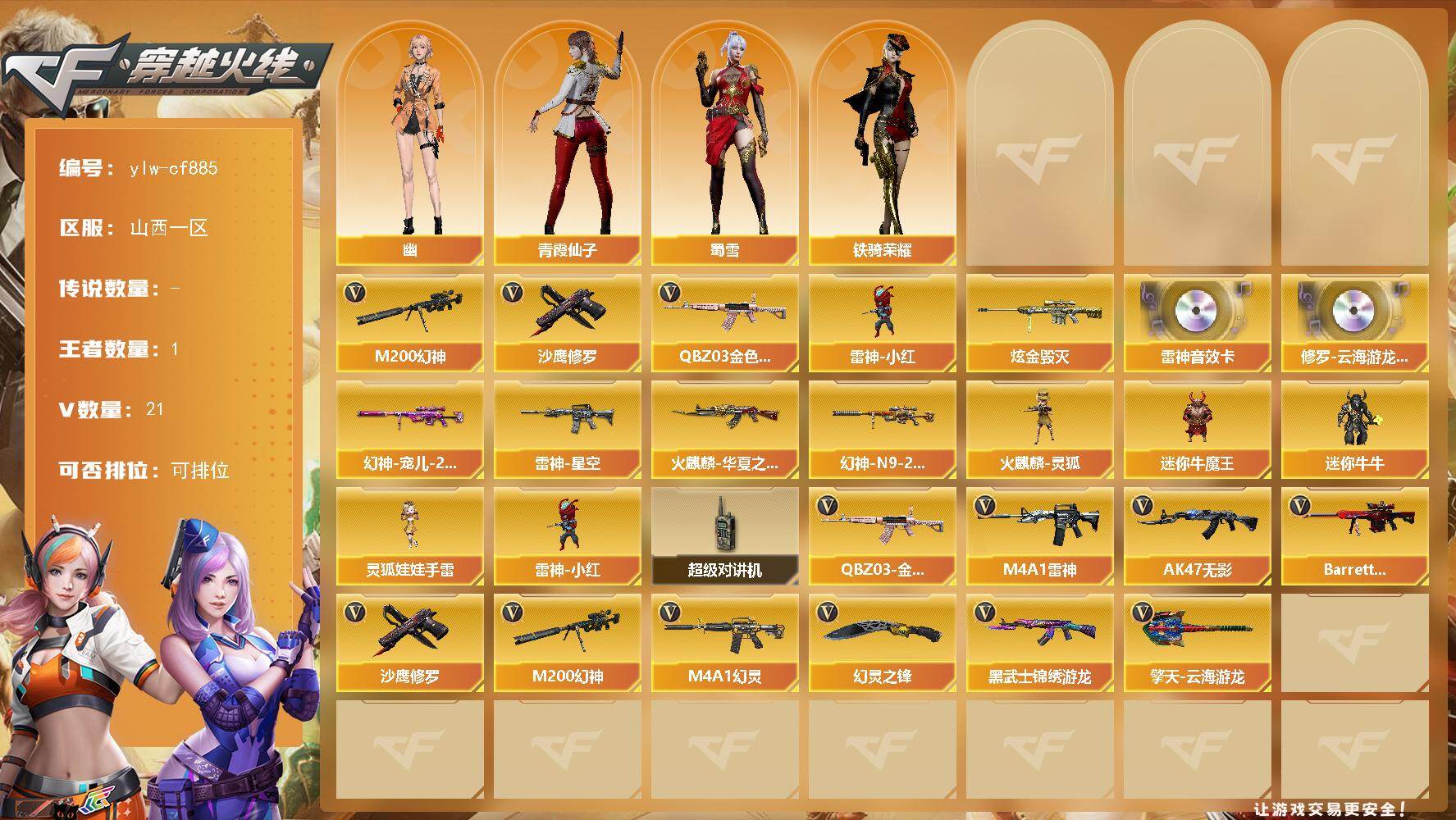 【商品标题】:山西一区-21V-1王者-1炫金【热门武器】:QBZ03-金色