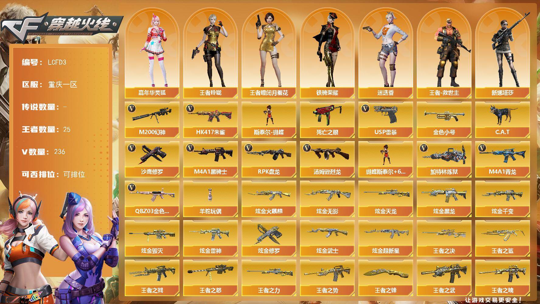 上海一区-35V-3王者武器数-0炫金武器数【热门武器】:HK417-朱雀,