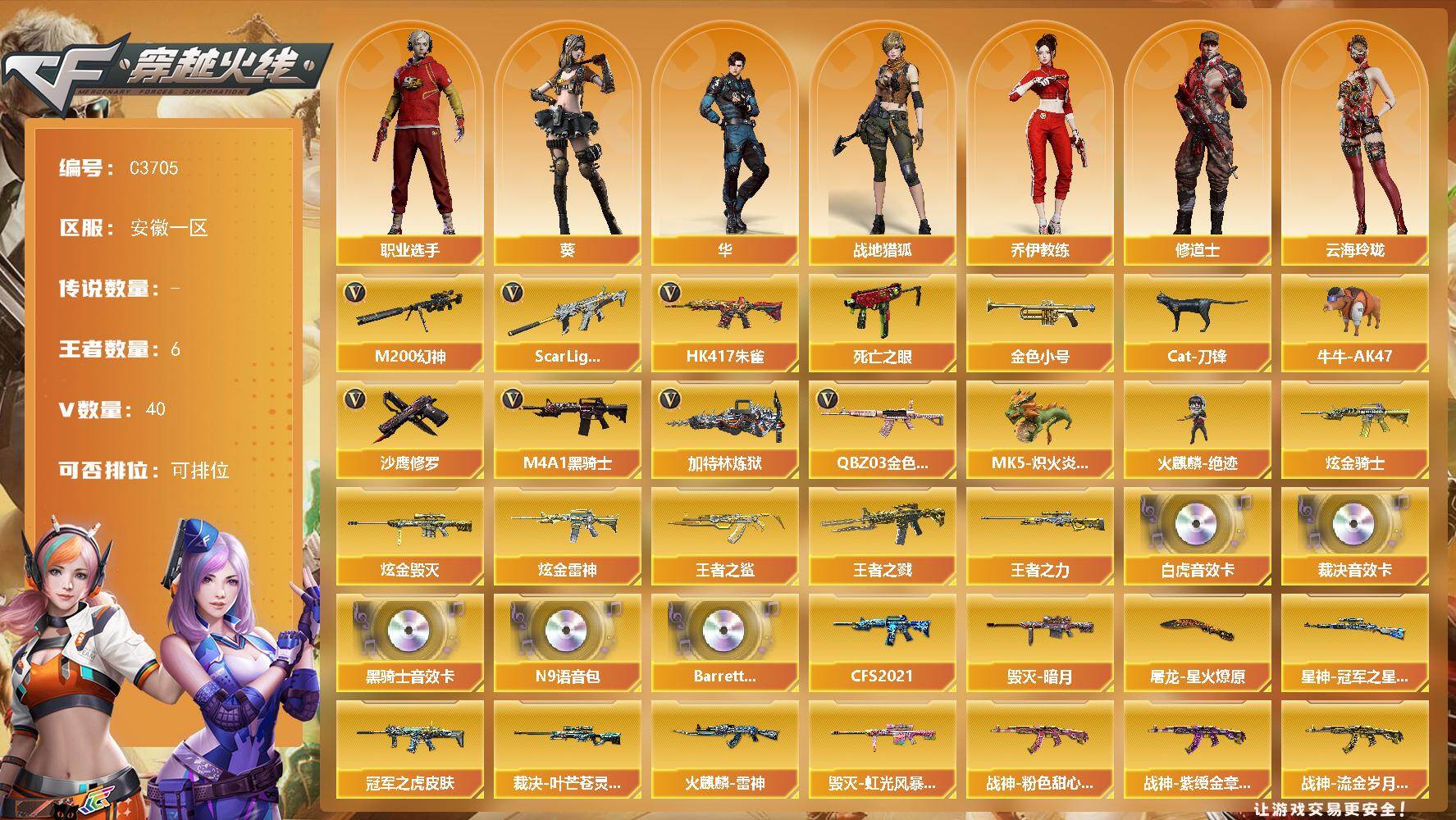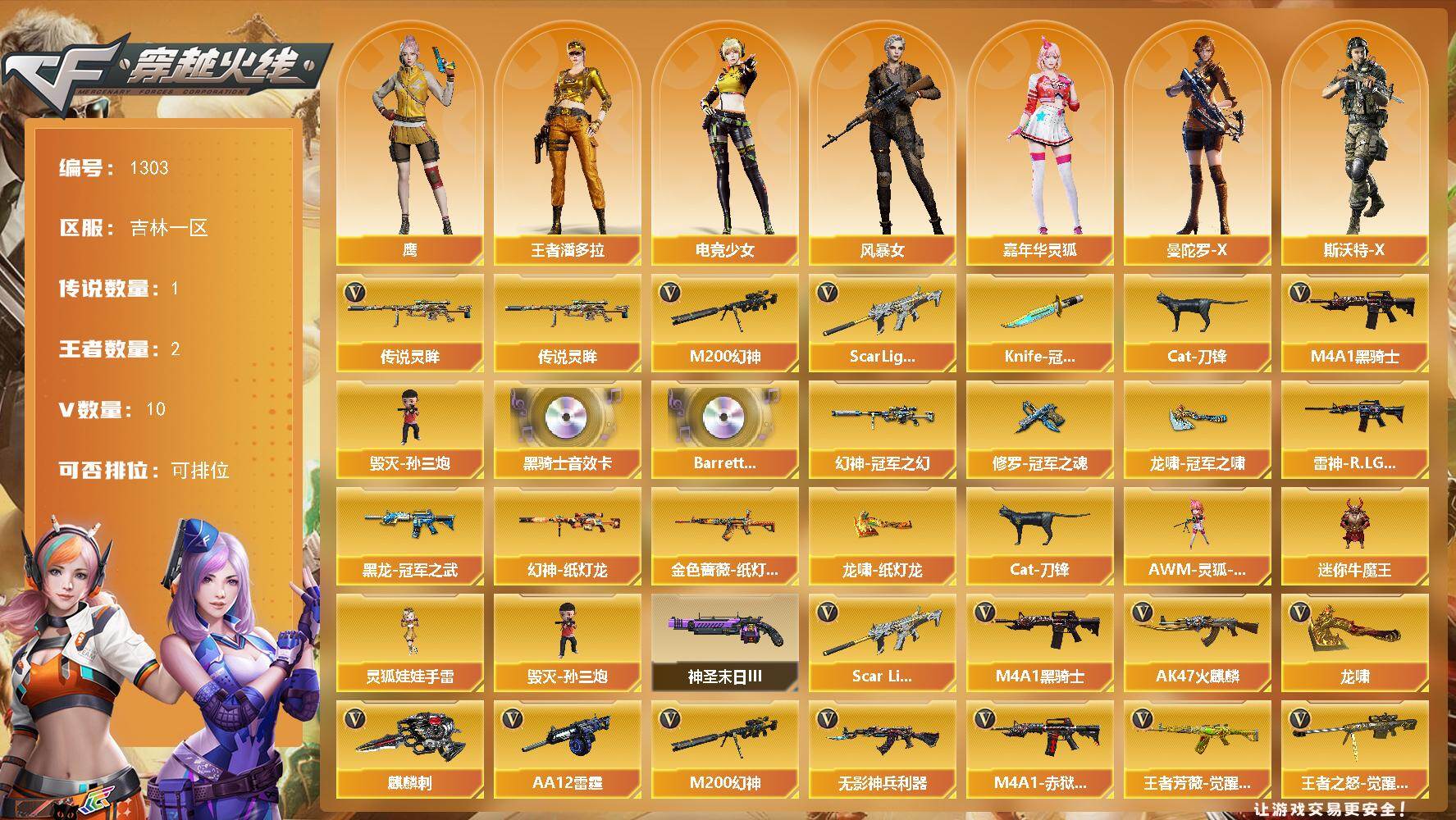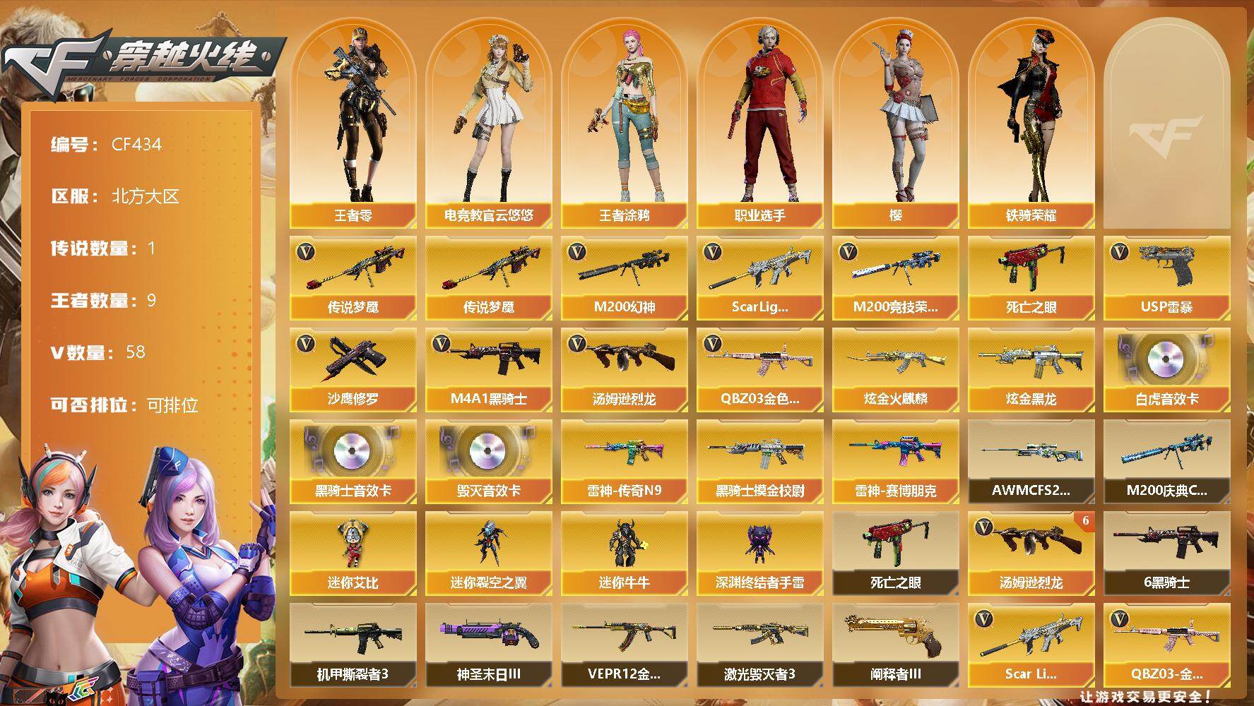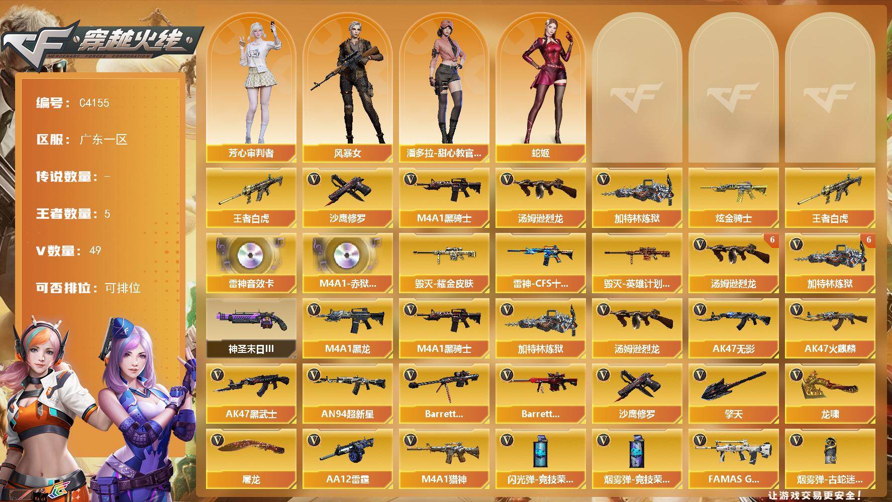 湖南一区-31V-4王者-2炫金【热门武器】:M200-幻神,死亡之眼,白虎