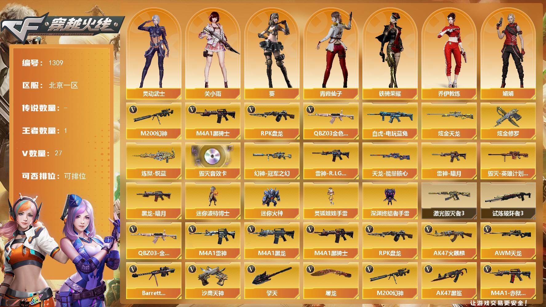 北京一区-27V-1王者-2炫金【热门武器】:QBZ03-金色蔷薇,M200