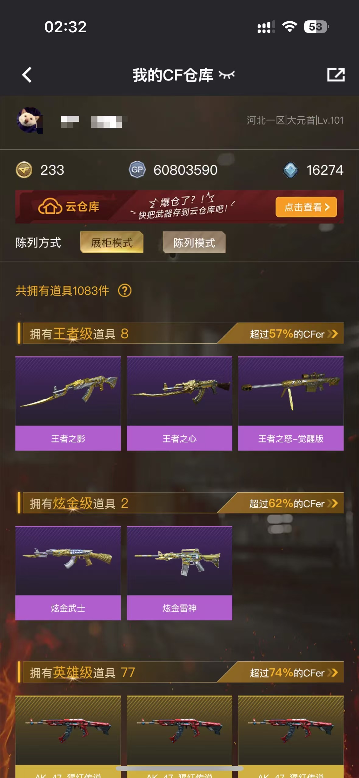 【等级】102【区服】北方大区【英雄角色】2【英雄武器】62
