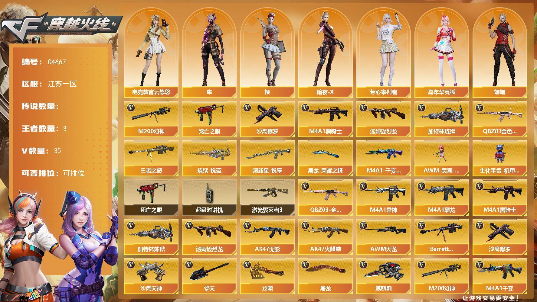 江苏一区-35V-3王者武器数-0炫金武器数