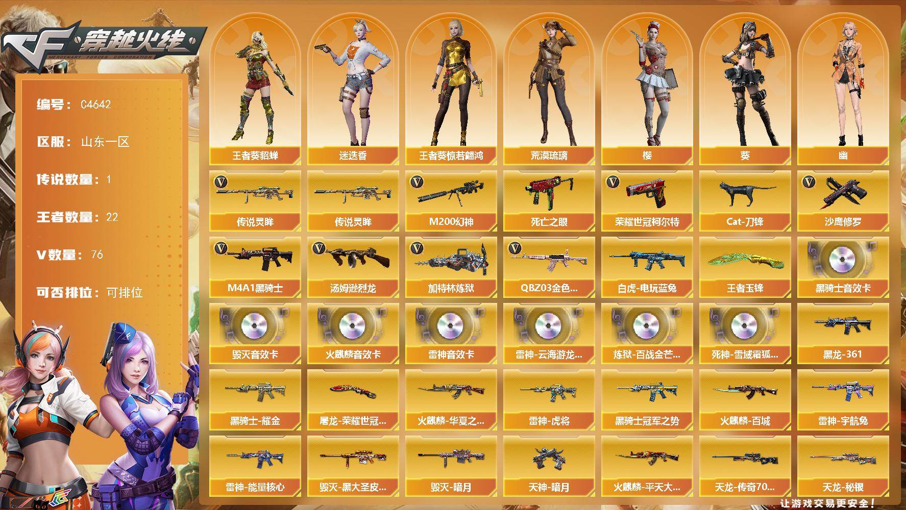 广东一区-76V-4王者武器数-3炫金武器数