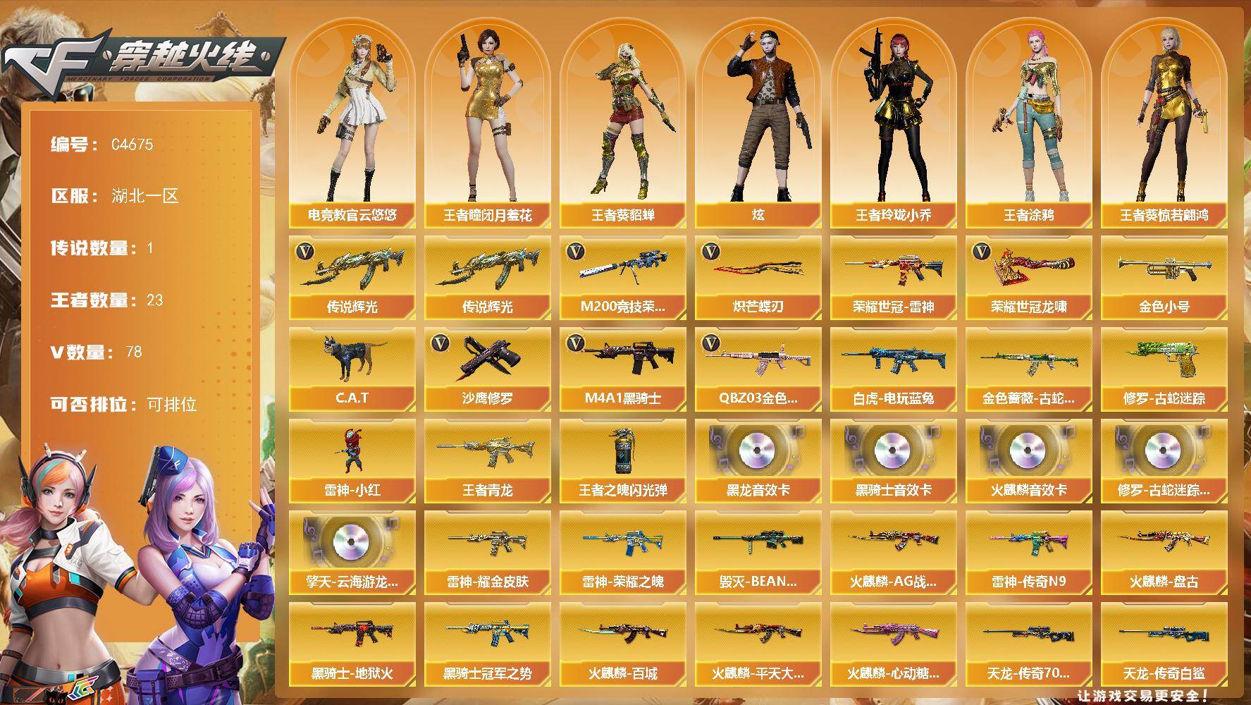 湖北一区-94V-23王者武器数-0炫金武器数