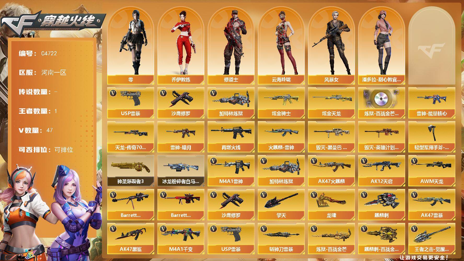 河南一区-49V-1王者武器数-2炫金武器数
