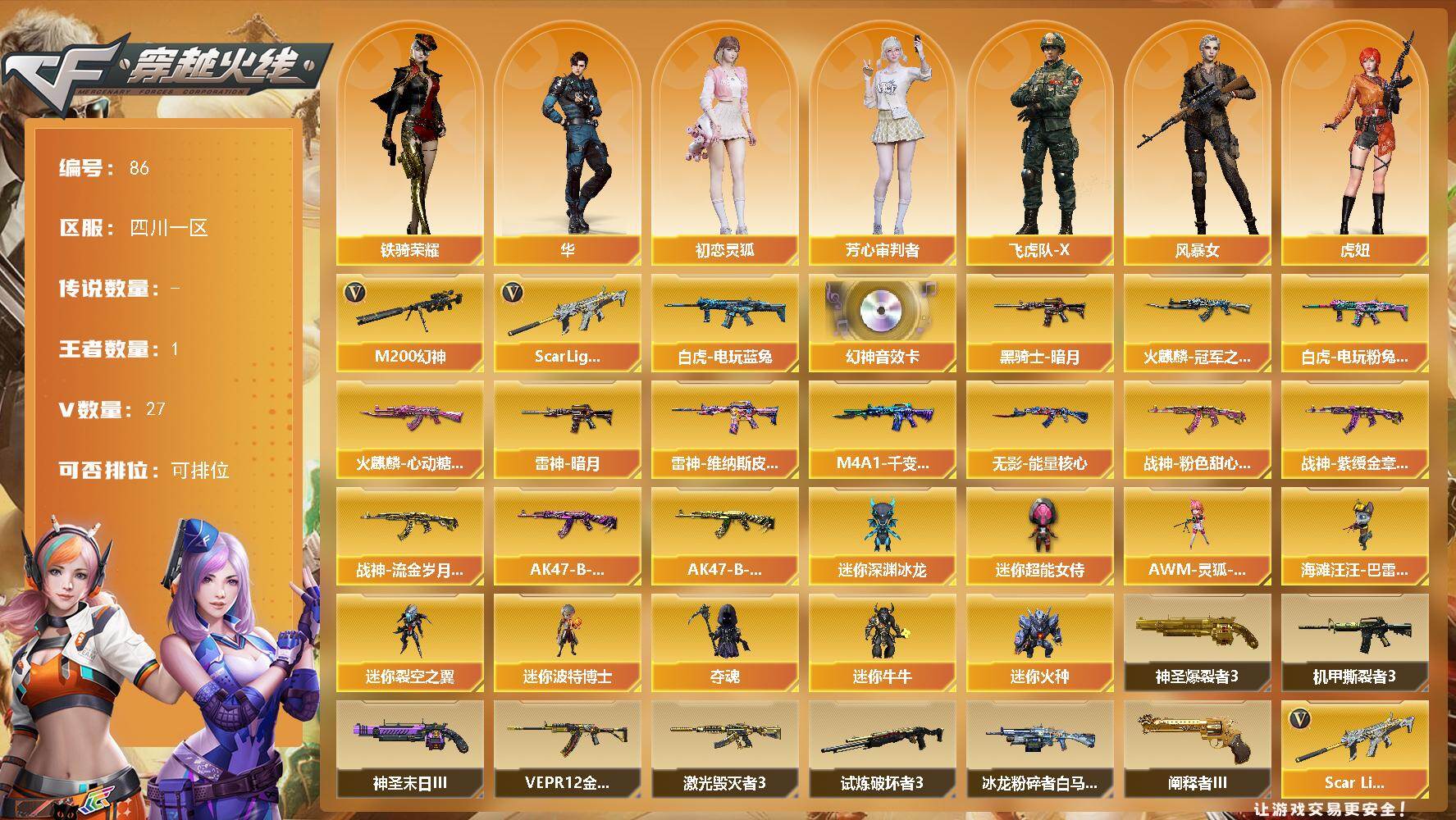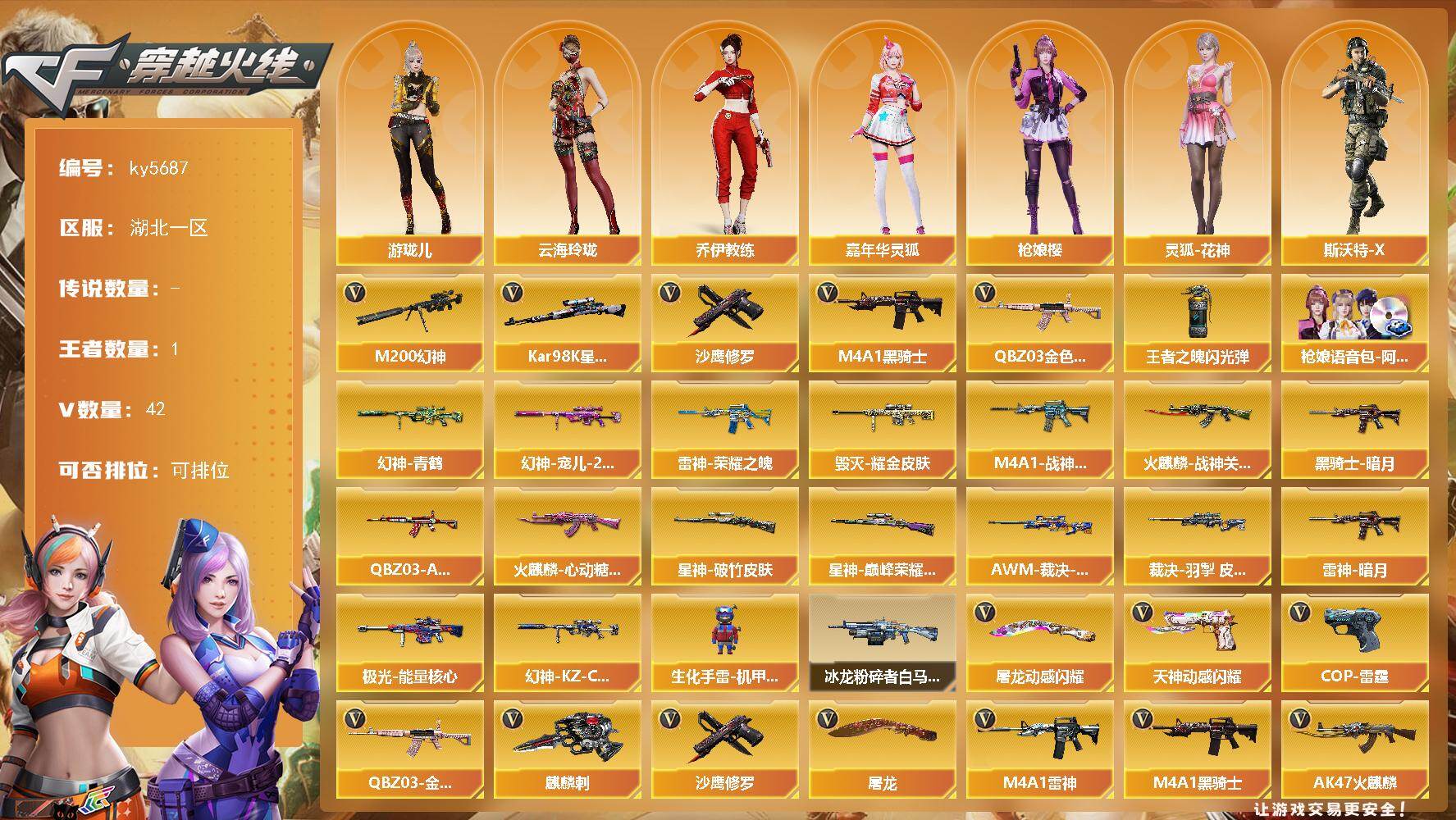 湖南一区-70V-3王者武器数-0炫金武器数【热门武器】:QBZ03-金色蔷