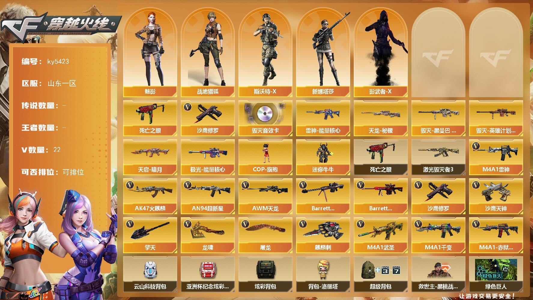 山东一区-22V-0王者武器数-0炫金武器数【热门武器】:死亡之眼*2,沙鹰