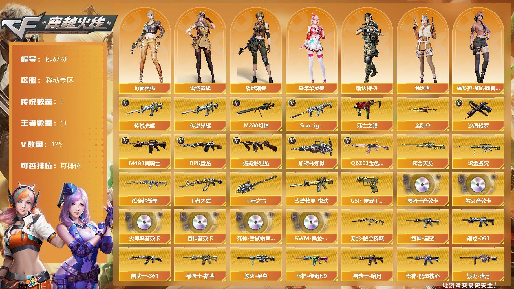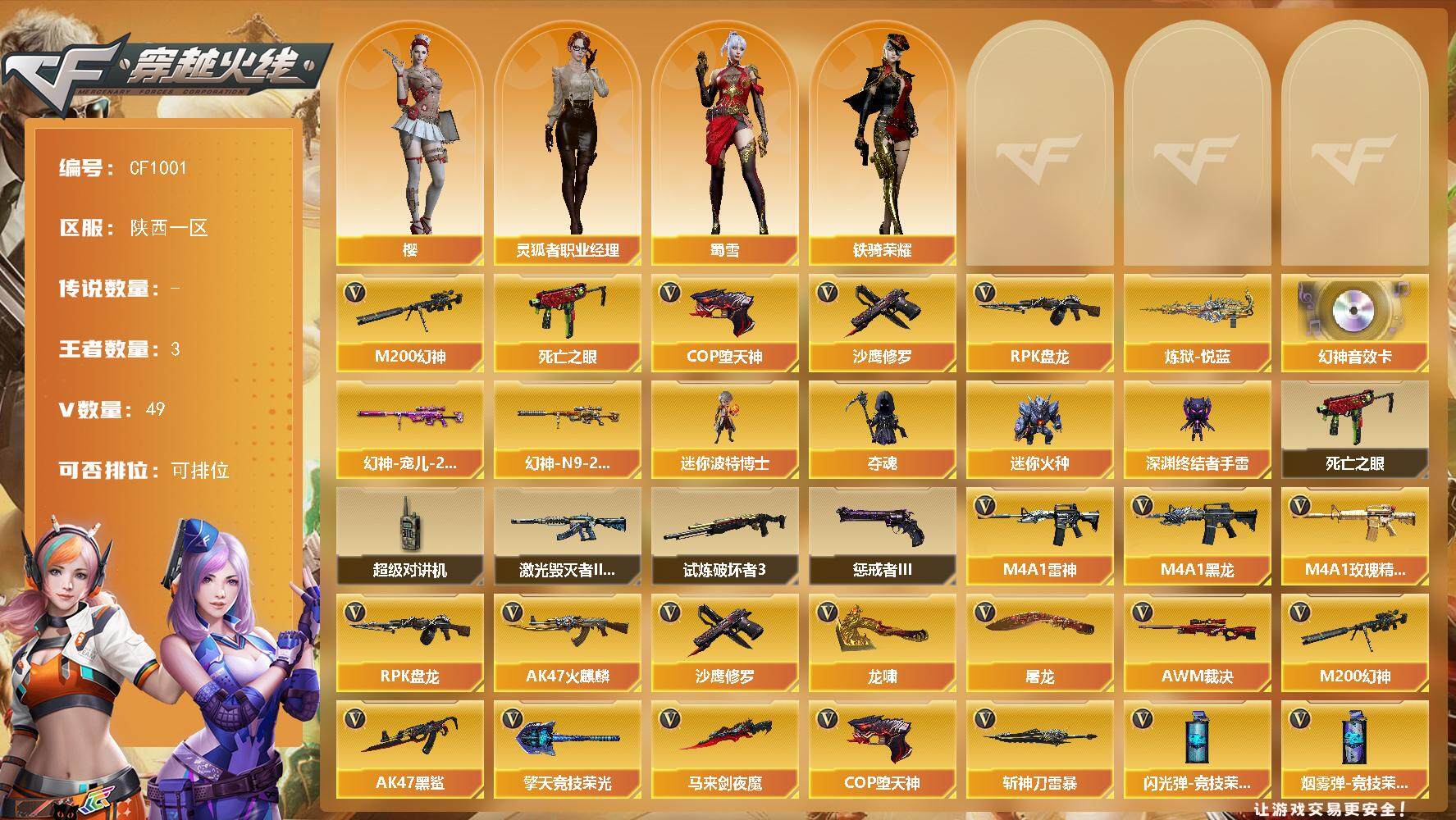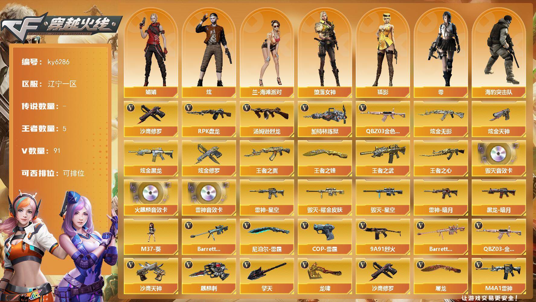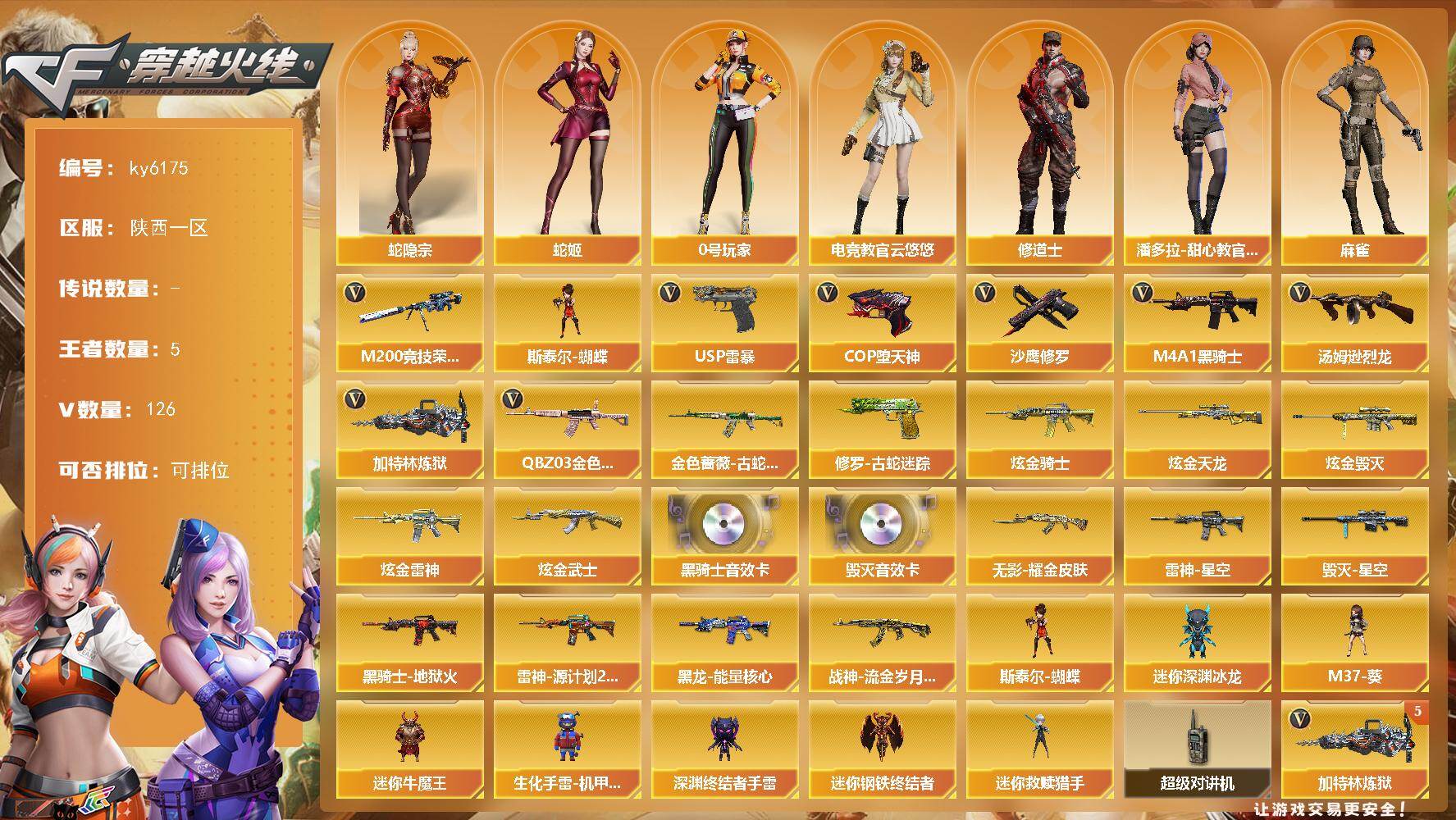 陕西一区-128V-5王者武器数-6炫金武器数【热门武器】:QBZ03-金