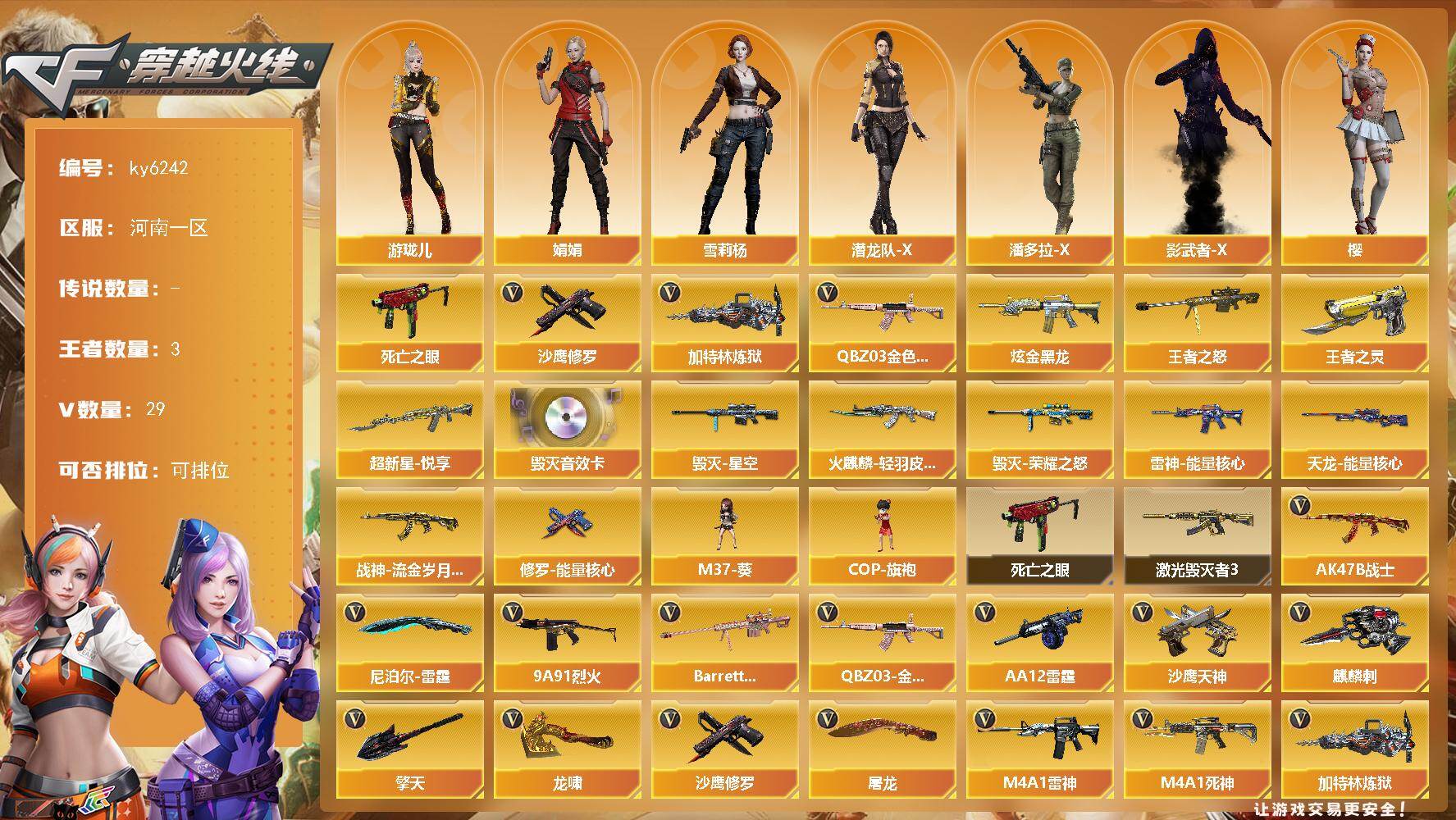 河南一区-29V-3王者武器数-1炫金武器数【热门武器】:QBZ03-金色蔷