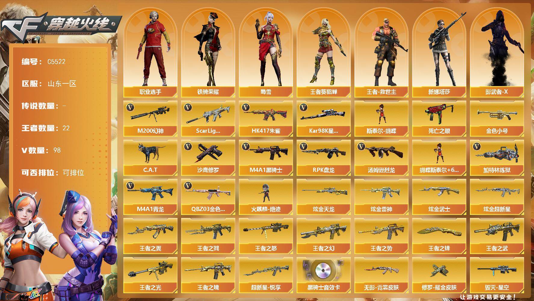 重庆一区-48V-7王者武器数-5炫金武器数【热门武器】:M200-竞技荣光