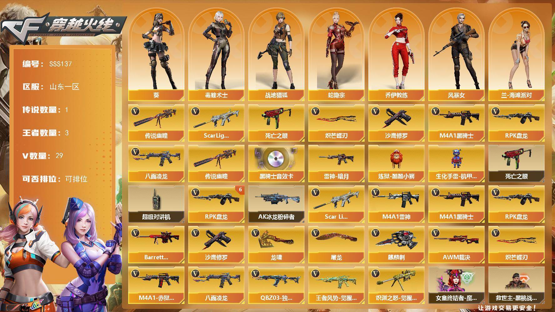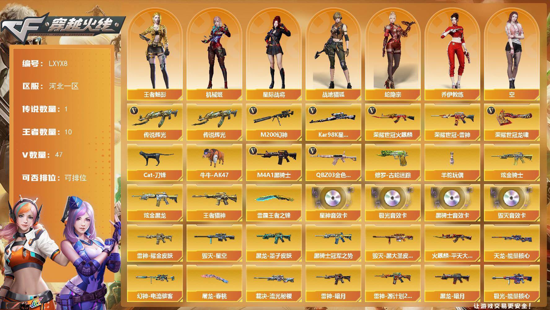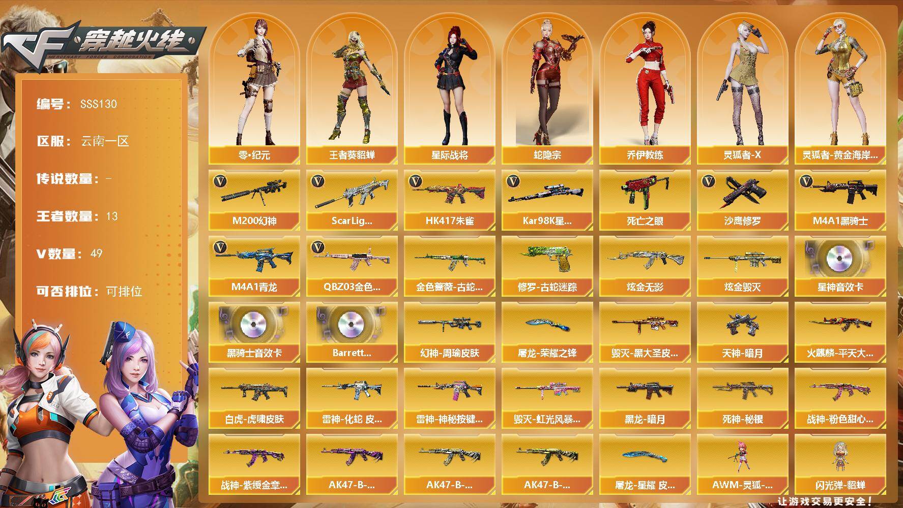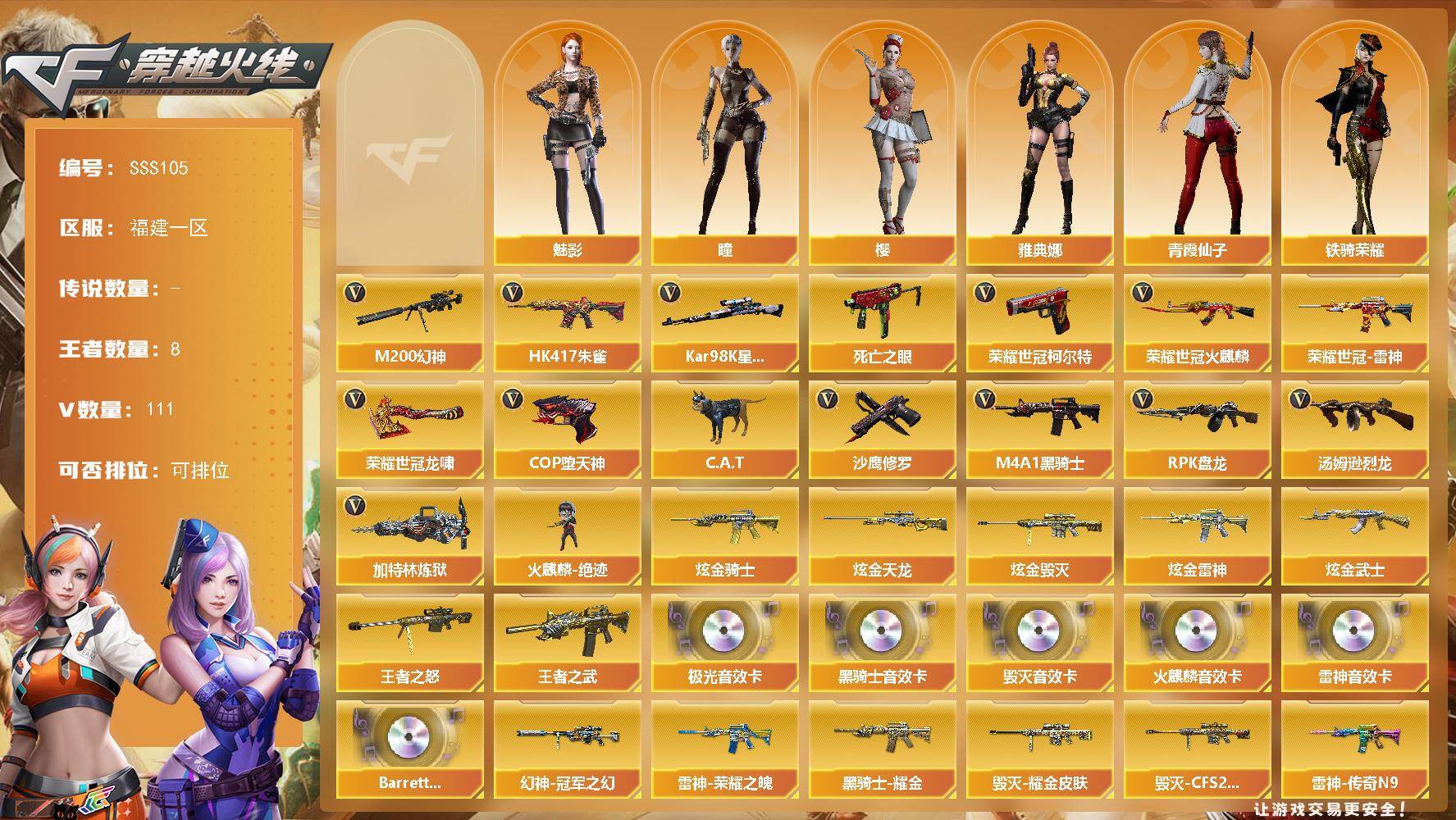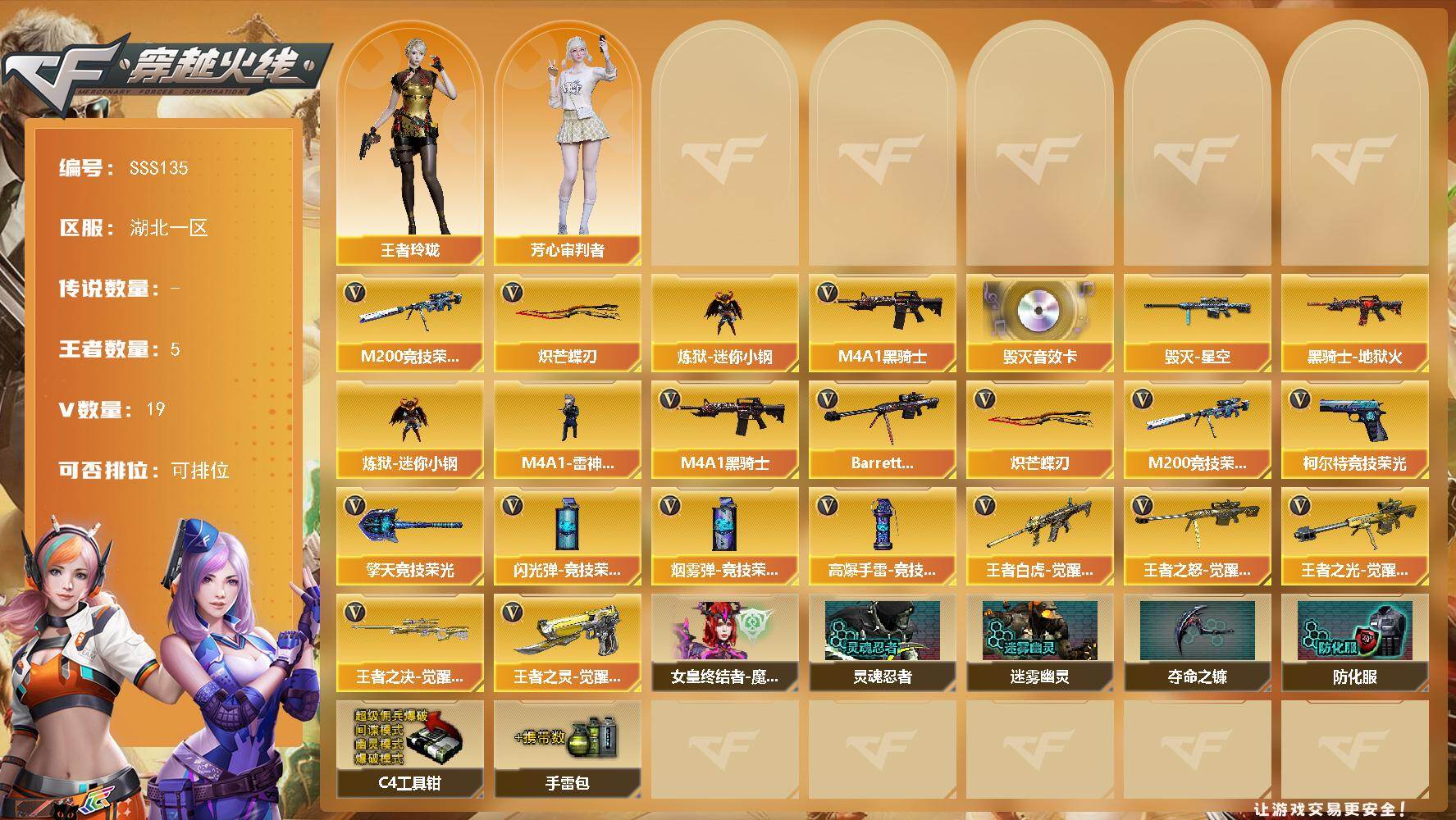 【商品标题】:河南一区-15V-0王者-0炫金【热门武器】:M200-竞技荣