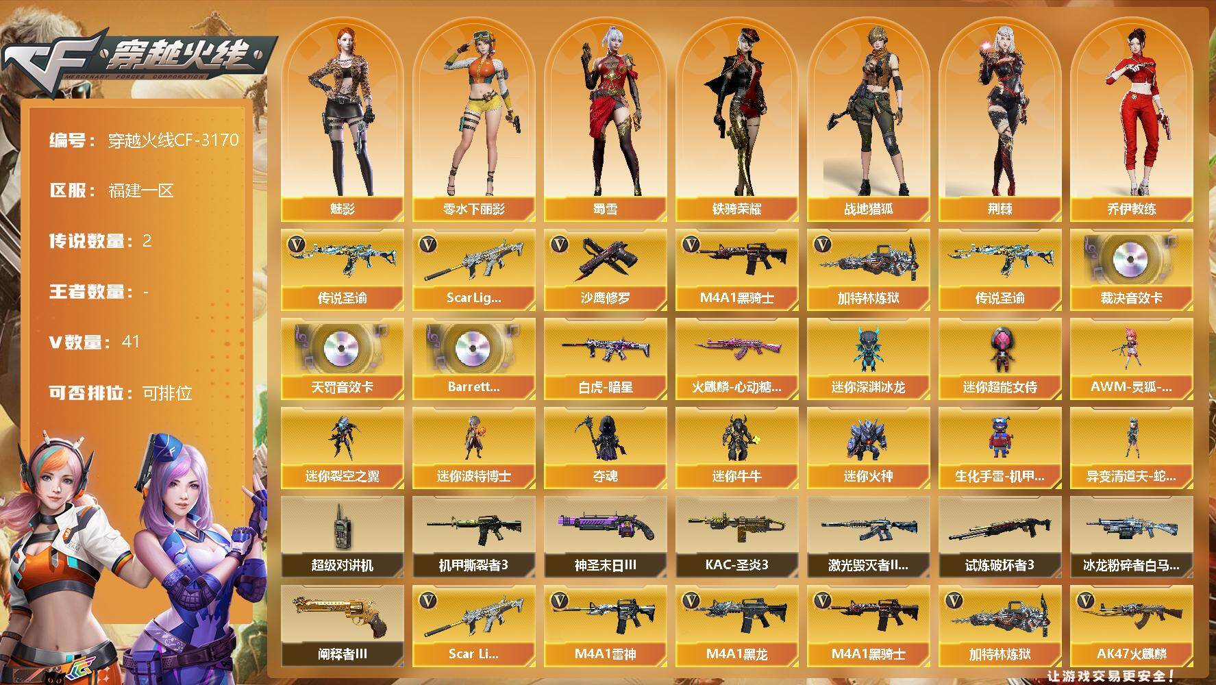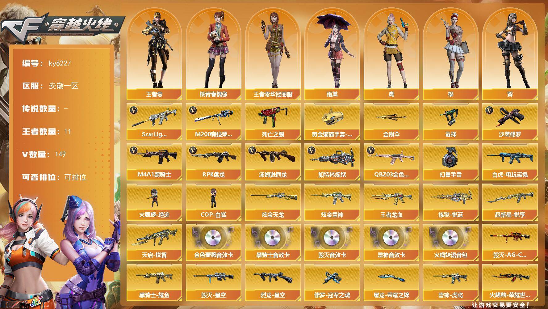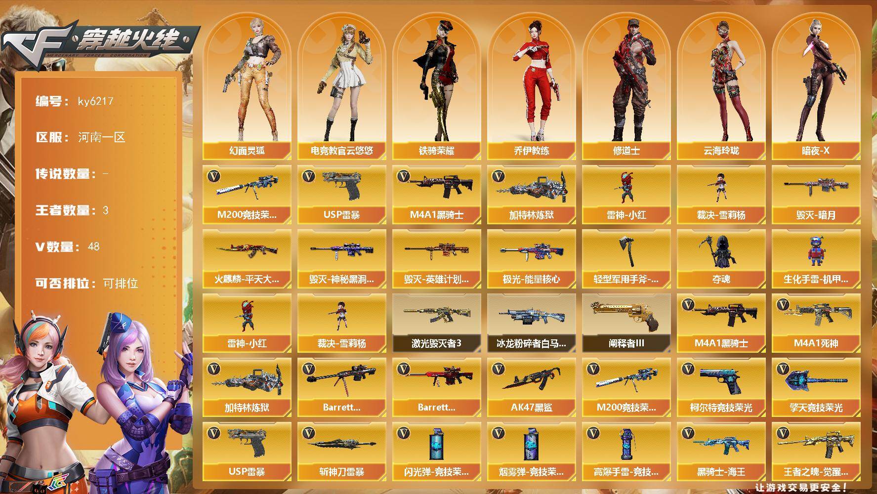云南一区-52V-5王者武器数-3炫金武器数【热门武器】:汤姆逊-烈龙*2,