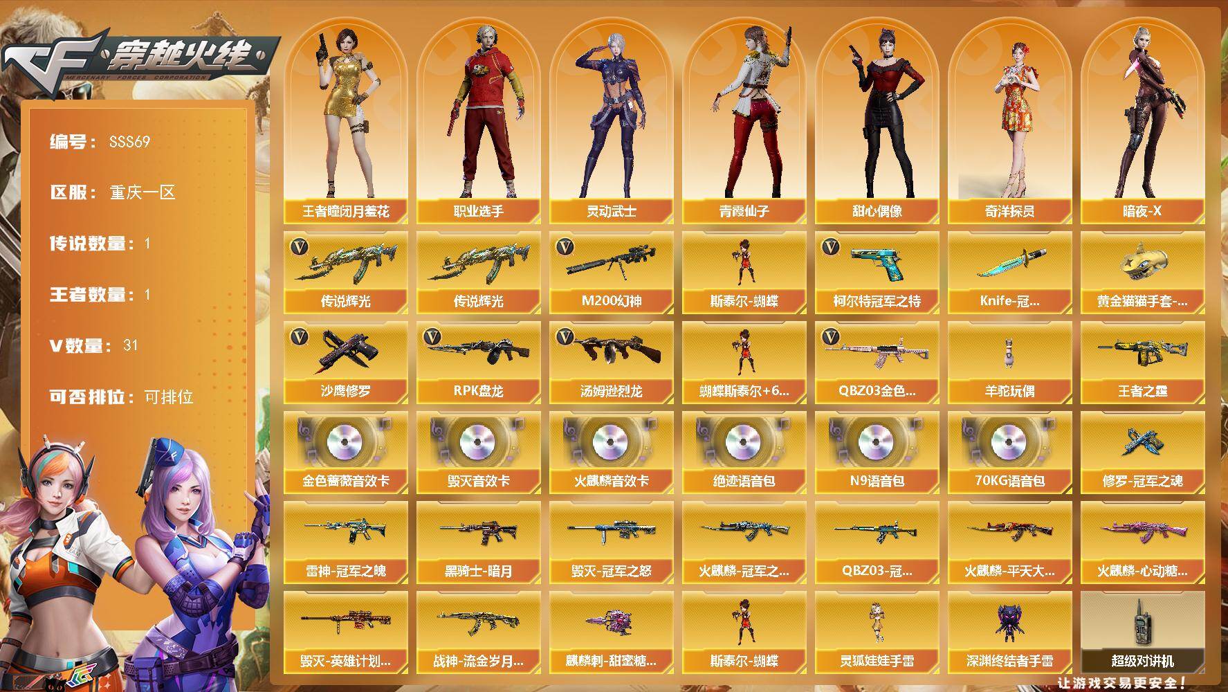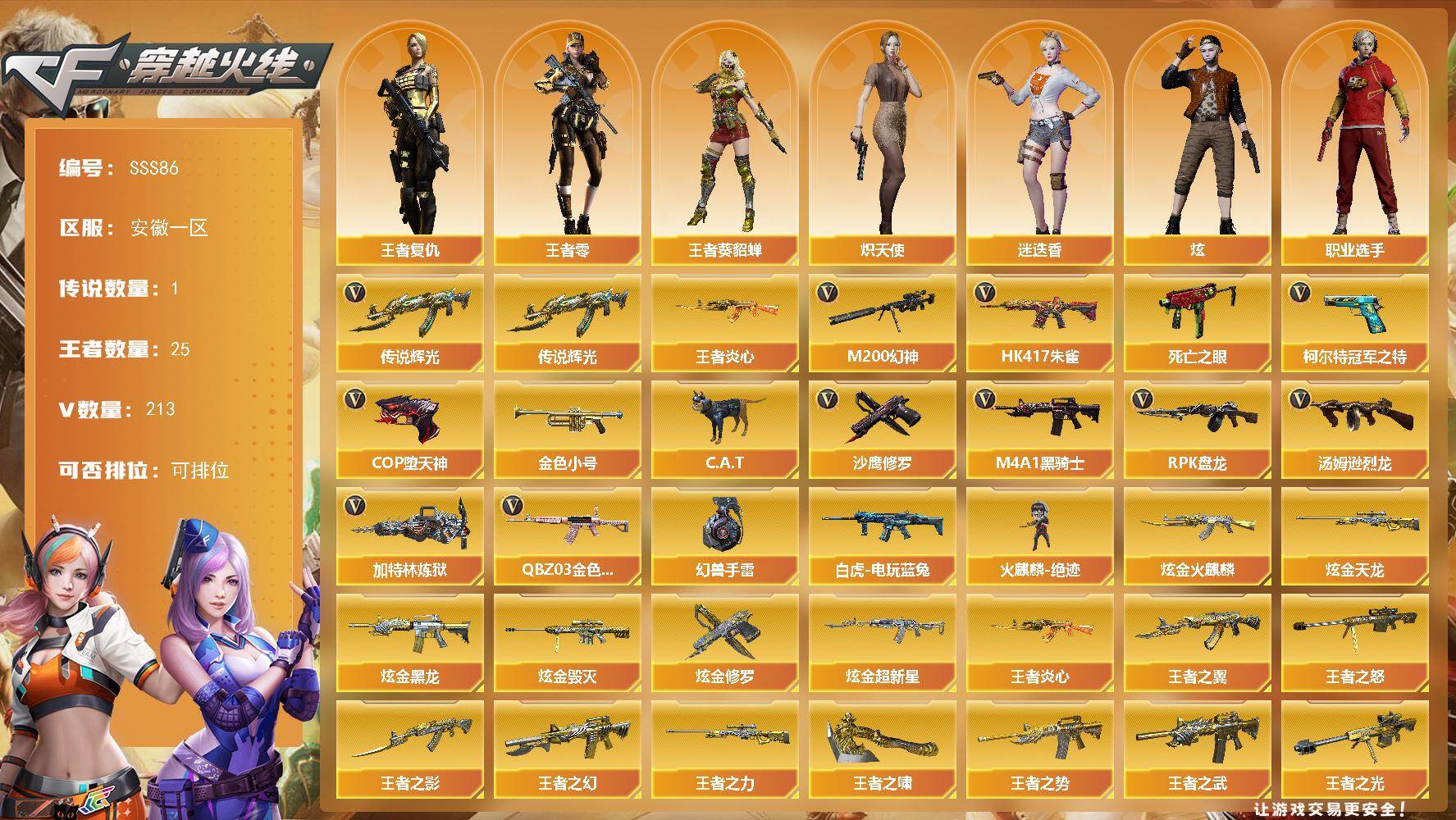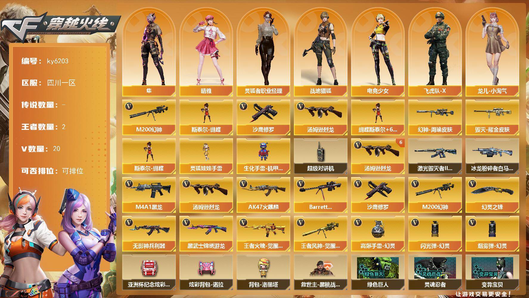 四川一区-23V-2王者武器数-0炫金武器数【热门武器】:M200-幻神,